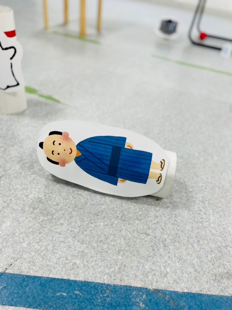 ペットボトルの的を倒すにはコントロールだけでなく、パワーも必要!思いっきり投げてバーン!と勢いよく倒せた子もいました💪