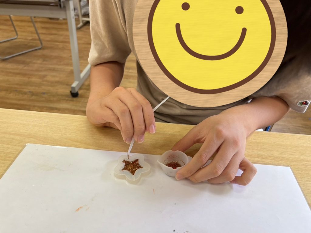 好きなグリッターを3つまで選んで混ぜ混ぜ🥣
