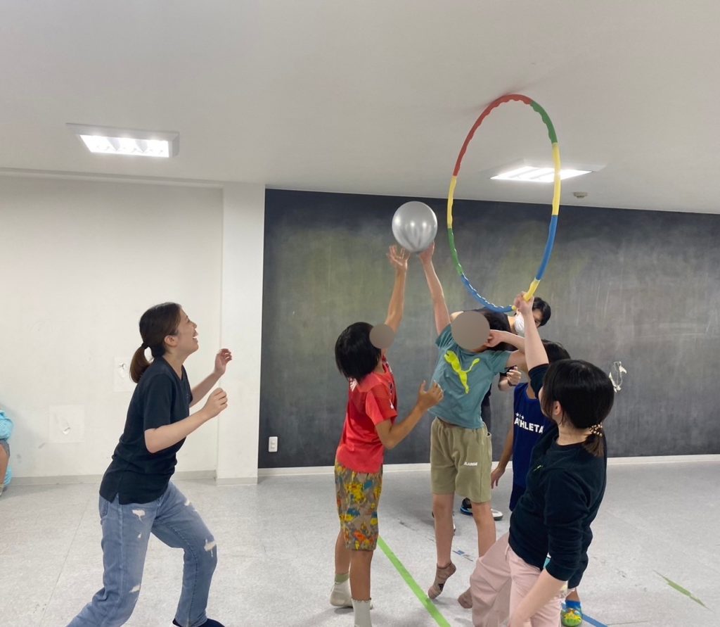 先日、クローバーキッズ学芸大学では、『リングバレーゲーム』という、新しい運動のプログラムを実施しました!