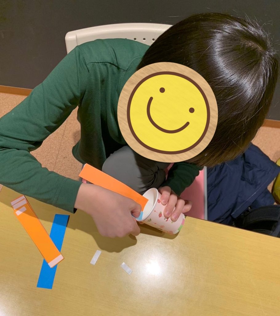 - 細く切った画用紙を紙コップに貼り付ける