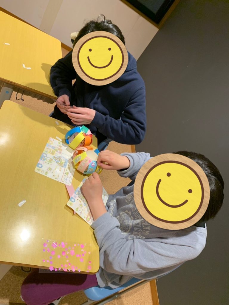 画用紙を貼り終えたところで、飾りつけに移ります💪