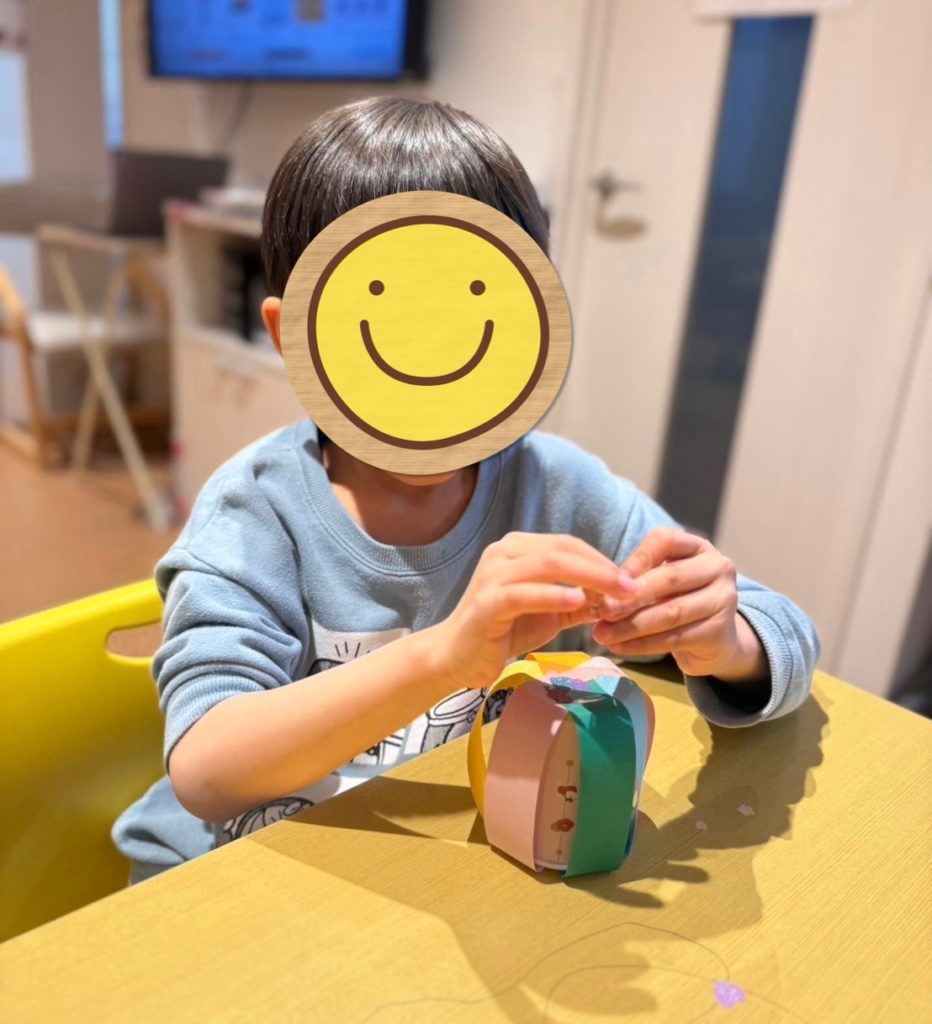 ということでクローバーキッズ学芸大学では、「ぼんぼり風小物入れ」という工作の活動を実施しました🌸