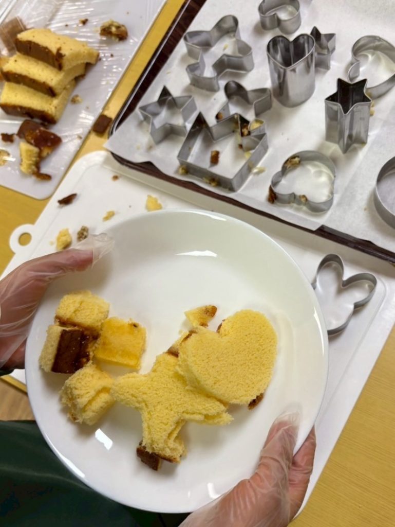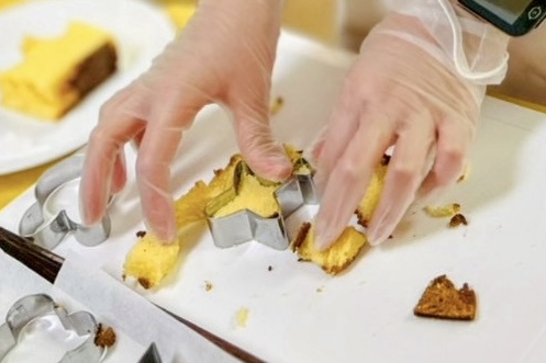 まずは、型抜きでカステラを成形しましょう💡