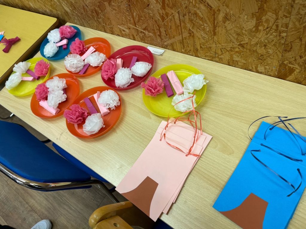 先日、クローバーキッズ麻布十番では、手先の巧緻性を目的とした工作、「桜の壁飾り」を作りました!