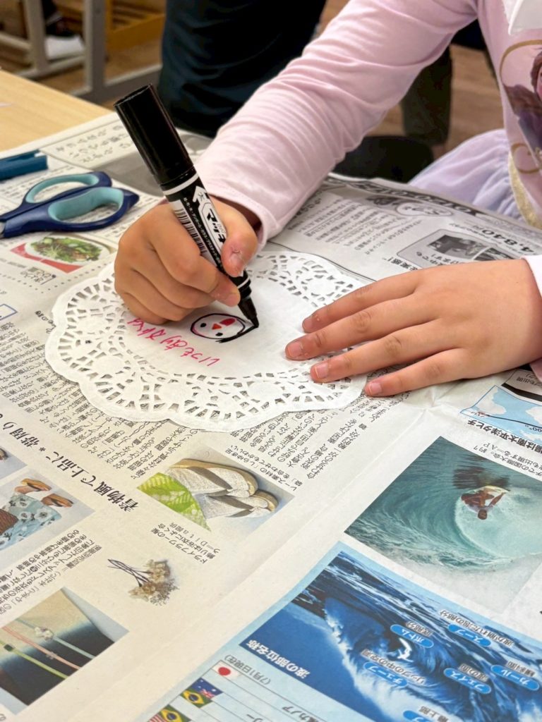 ペーパーレースに感謝のメッセージや、家族の似顔絵を書きます✏️