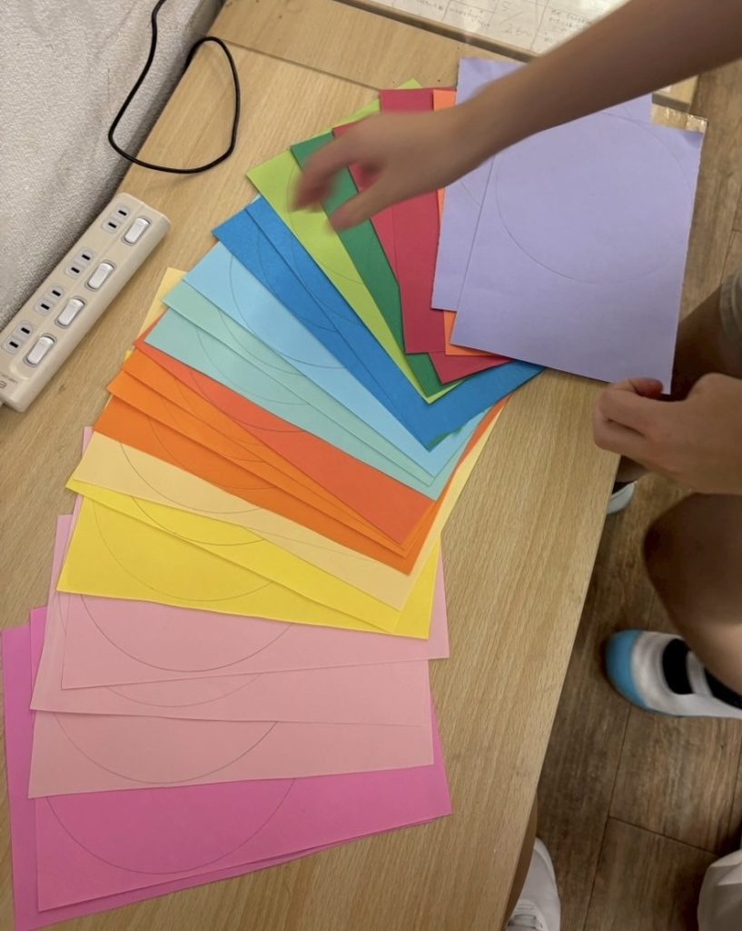 好きな色の画用紙を選び、はさみで丸く切ります。✂️📃