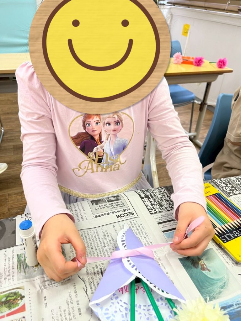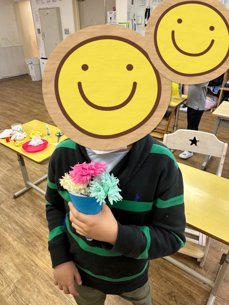 手先の巧緻性、時間の見通しなどの目当てのもと、家族への感謝を伝えるために、集中して工作に取り組むことができました👏🌸