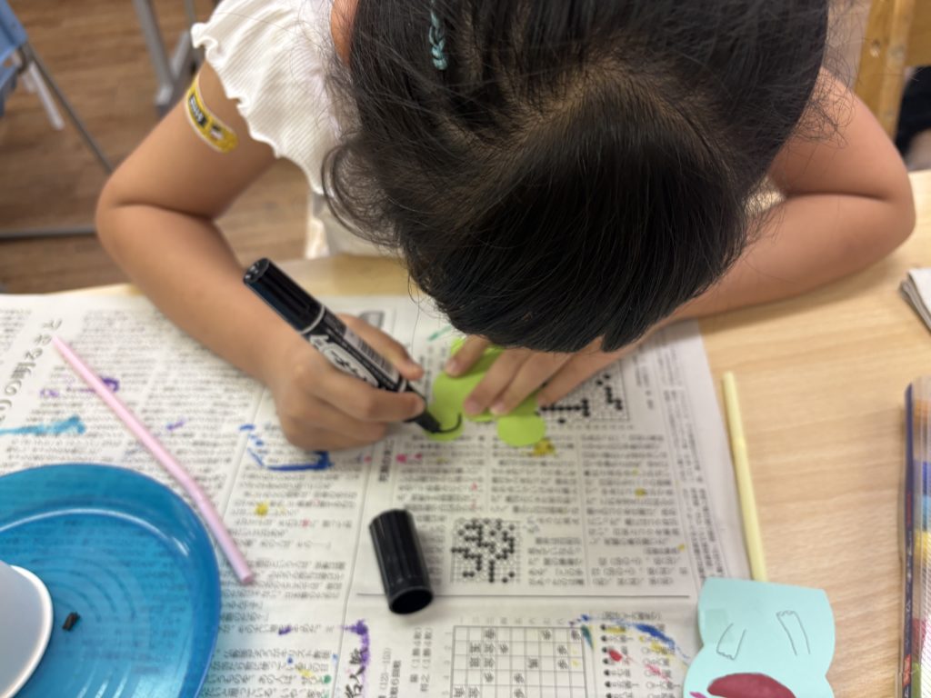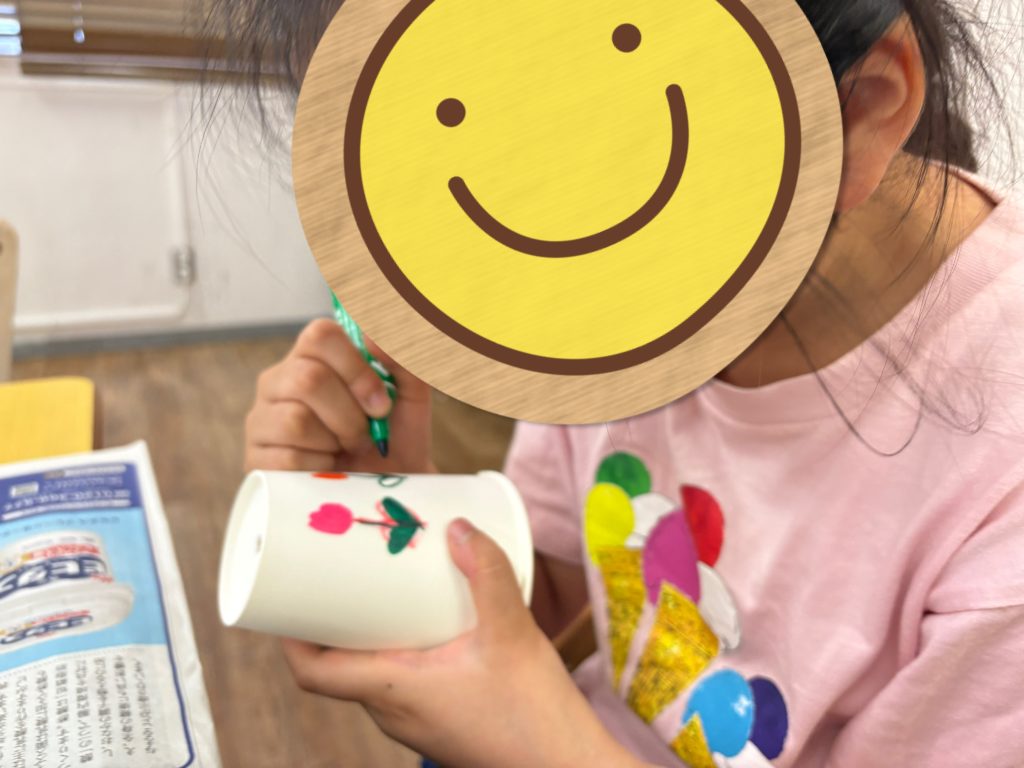 とても集中して頑張っていました✨雨やお花など、カエルの好きなものを楽しそうに描いている様子が見られました👀🌧️
