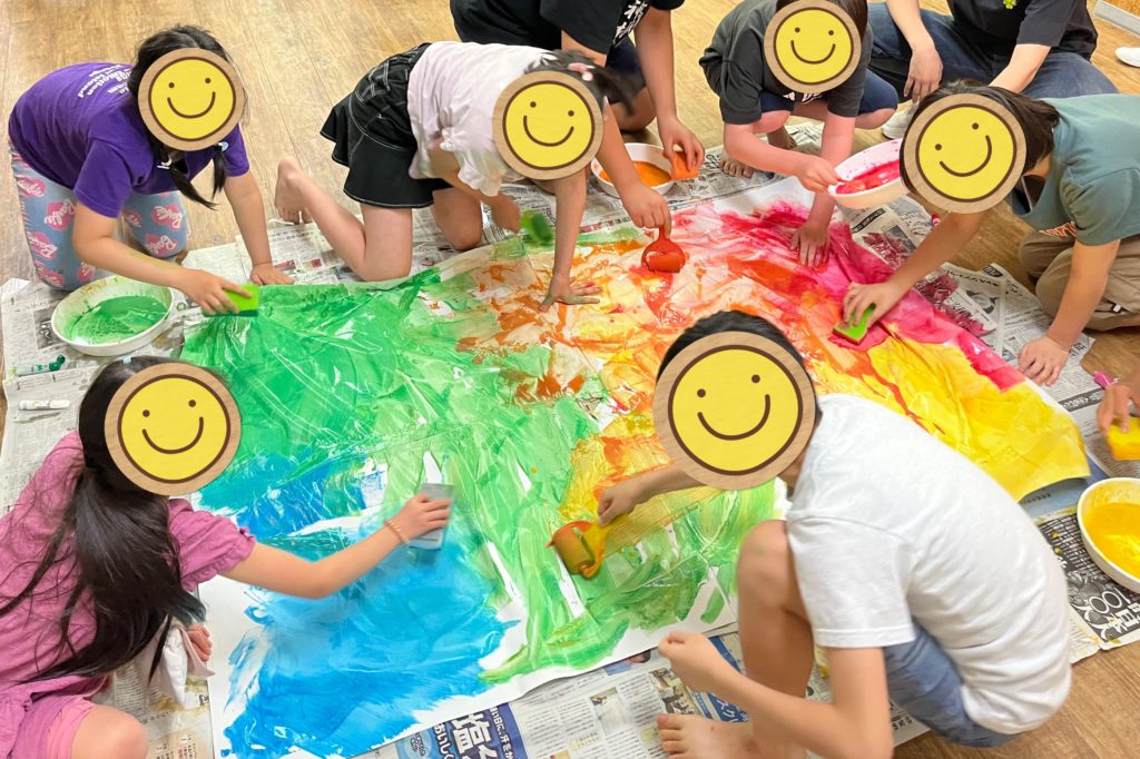 大きな白い紙の上に、自分たちのチームの色を一番多く塗れたチームが勝利です🔥