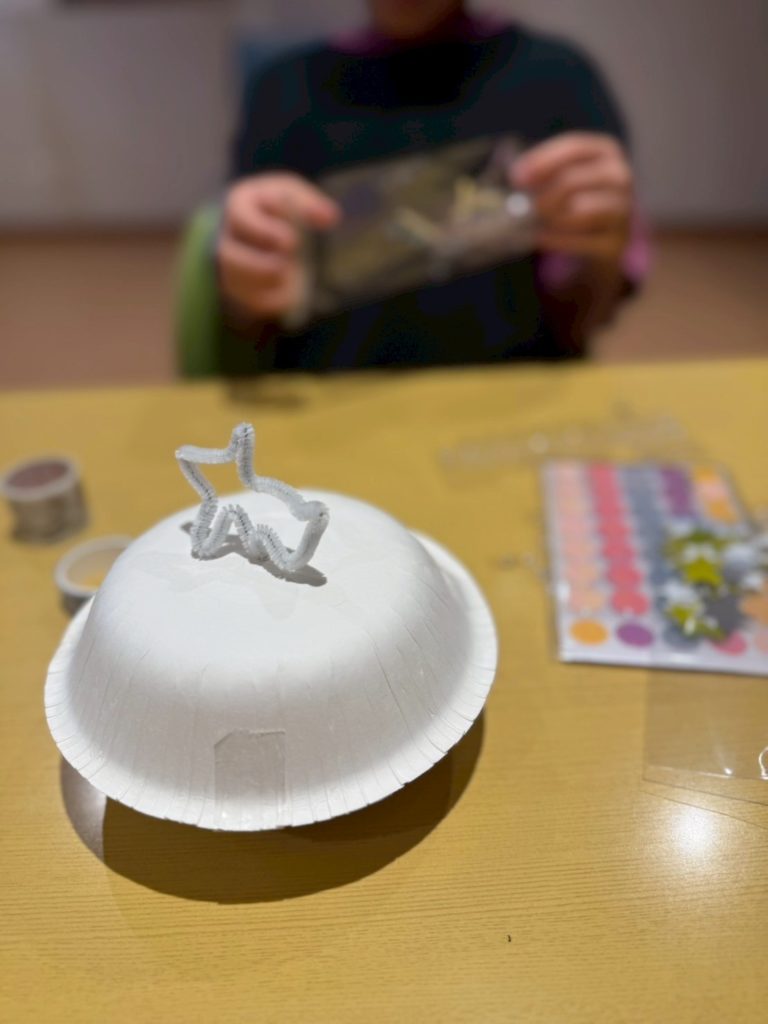紙皿を2枚使いUFO🛸の形を作り、中にはビー玉を入れます。不思議な動きをするUFO🛸にみんな大興奮でした!
