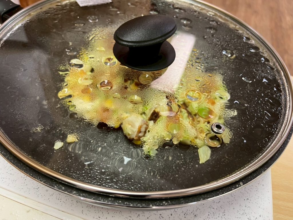 流し入れたら形を少し整えて、蓋をして4分待ちます⏰
