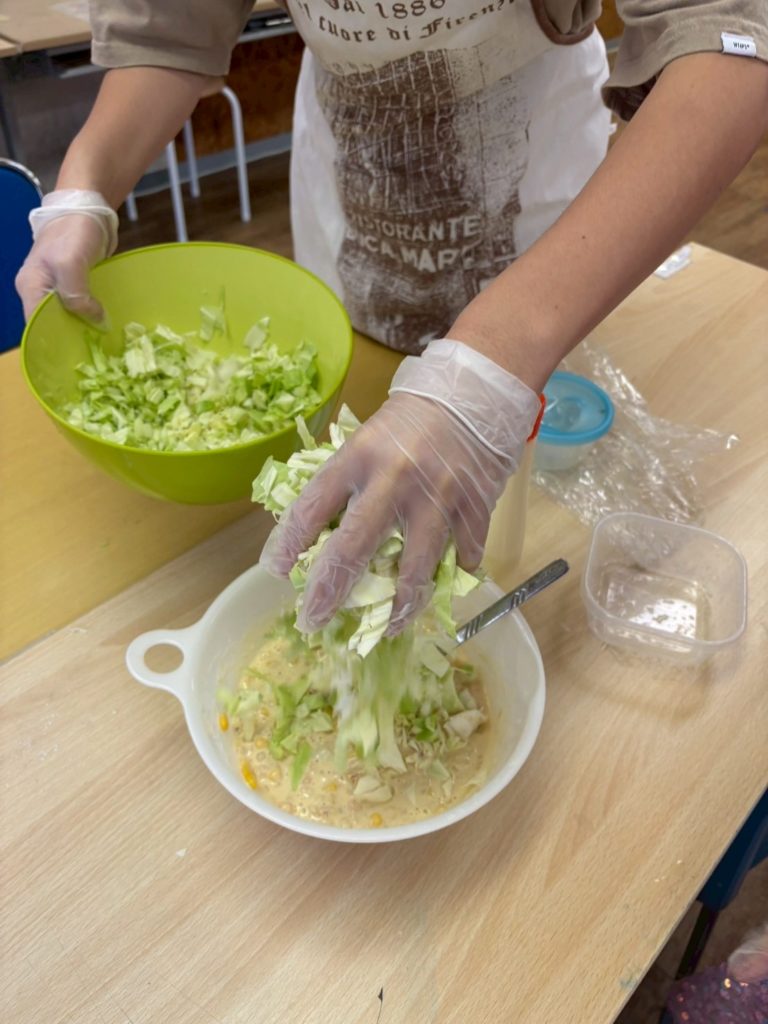 混ぜ合わせたら、キャベツも加えます!