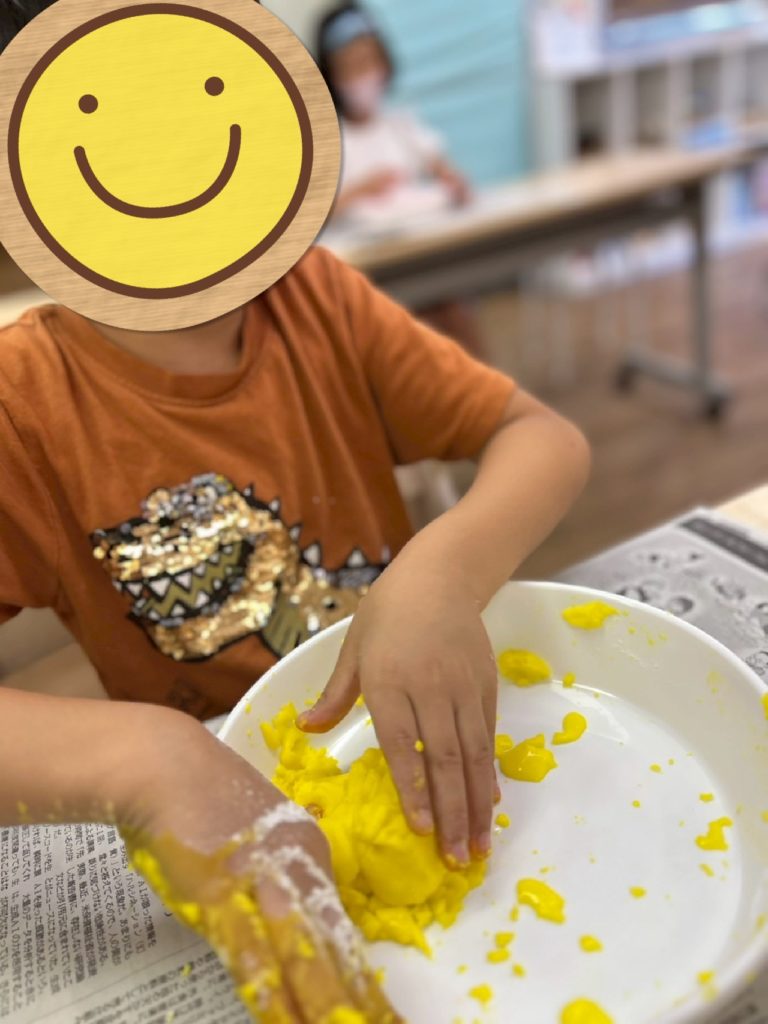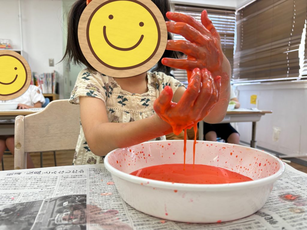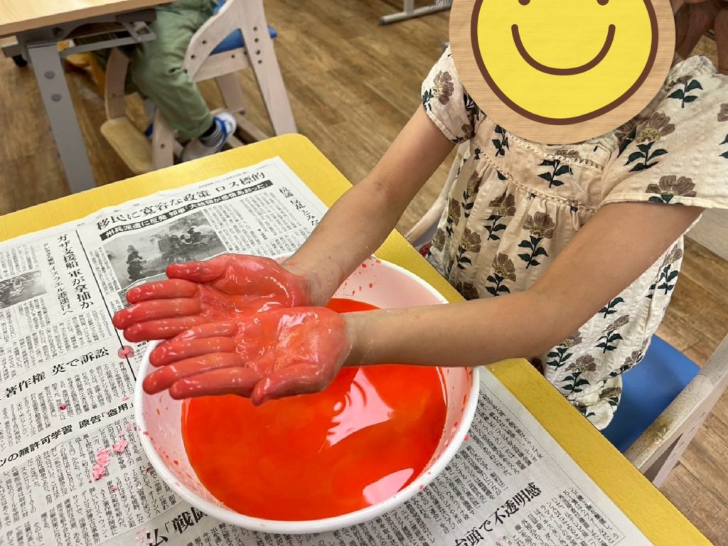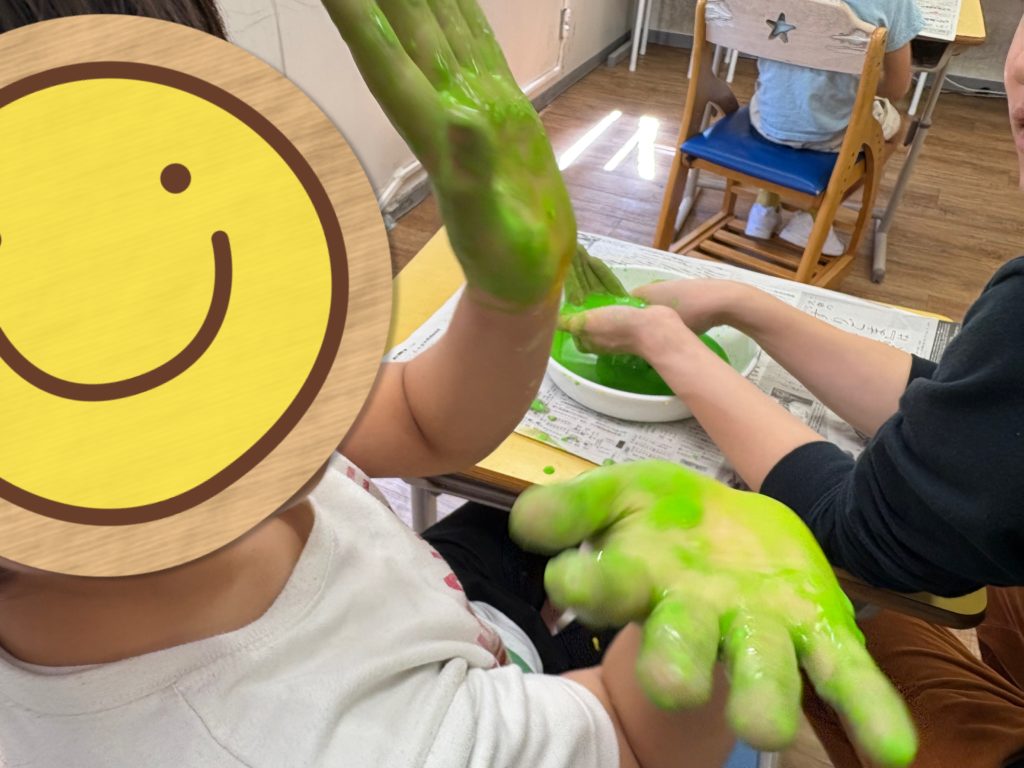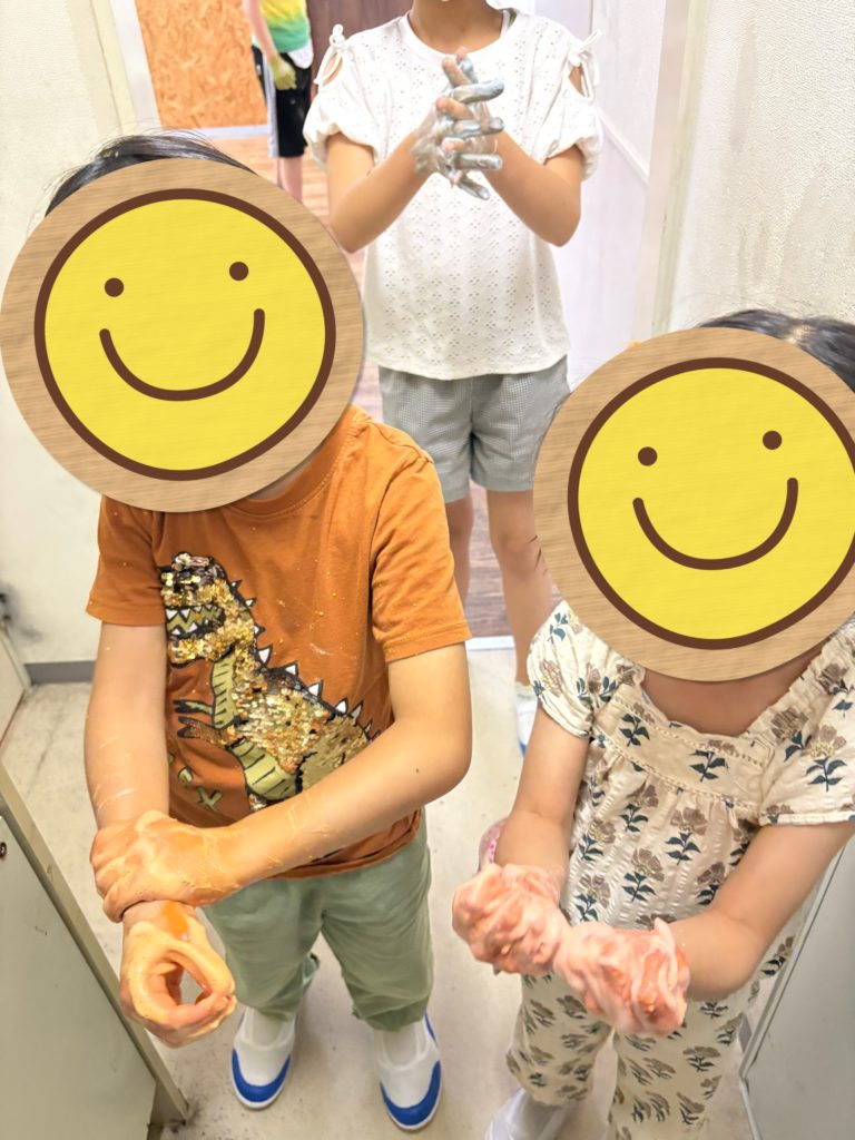 とろ〜っとした不思議な感触に、子どもたちは「なにこれ!」と目を輝かせて楽しんでいました🎶プログラムが終わった後も「もっとやりたい!」という声があがり、休み時間にも夢中で遊ぶ姿が見られました💓