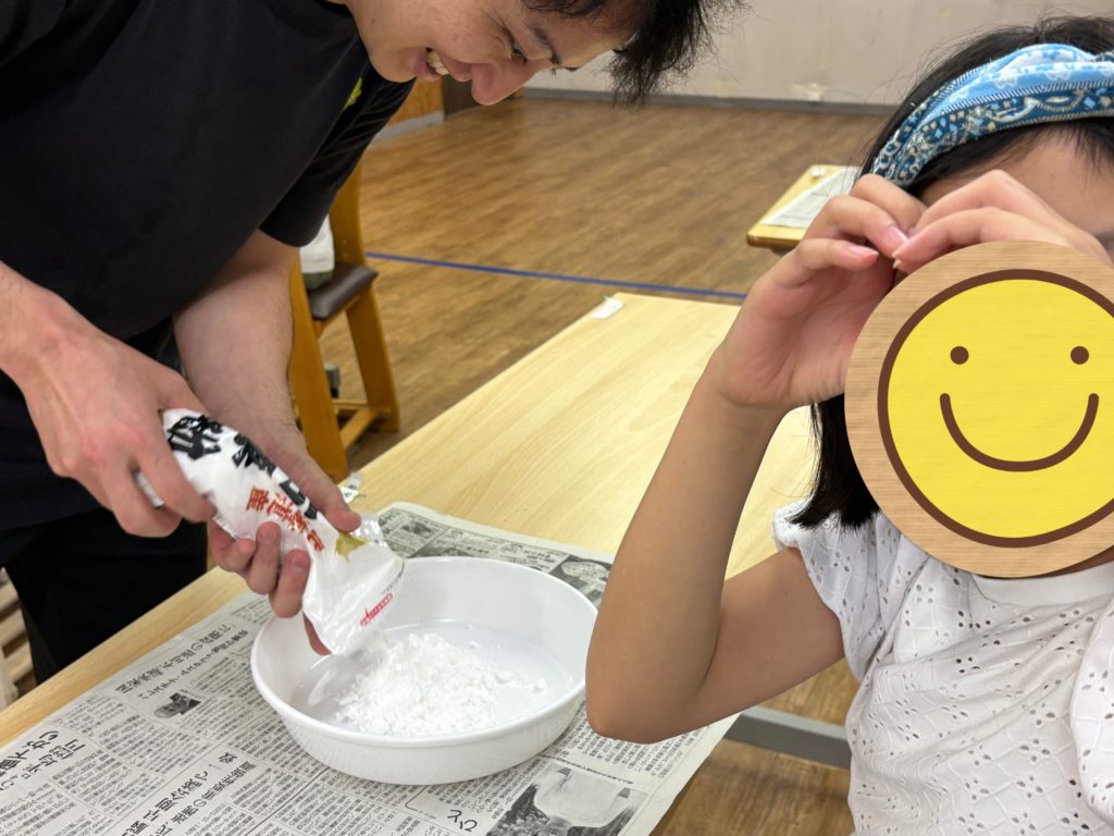 まずは片栗粉を入れます!みんな始まる前からワクワクドキドキ🌟