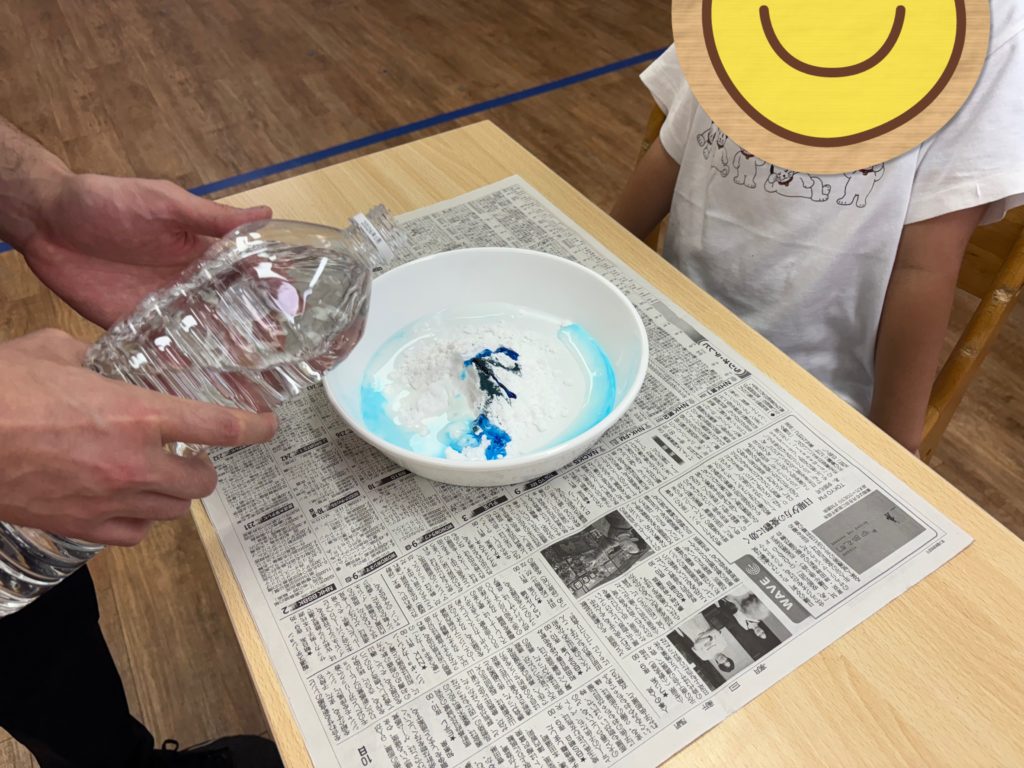 今回は食紅を使用して着色しました!子どもたちはそれぞれ自分の好きな色を選択しています。