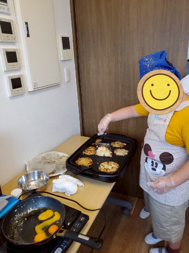 今回のプログラムは広島風お好み焼き作りです!焼きそば、目玉焼きなどたくさん料理に挑戦していきます💪