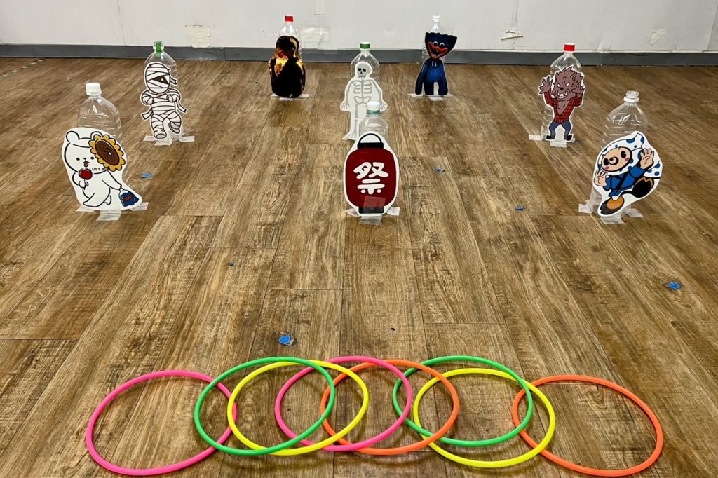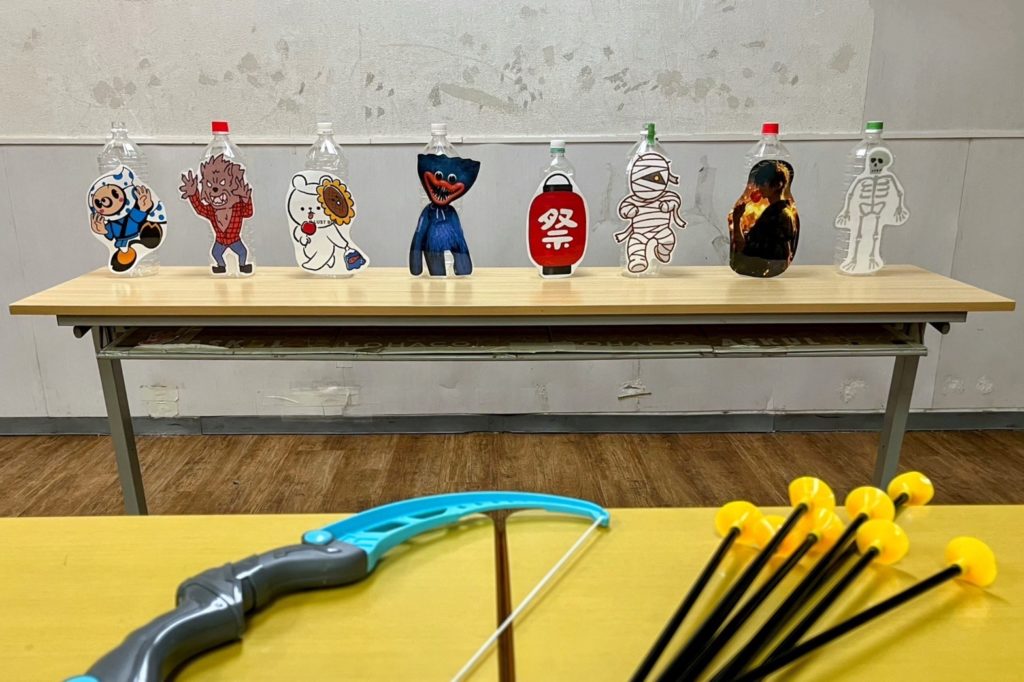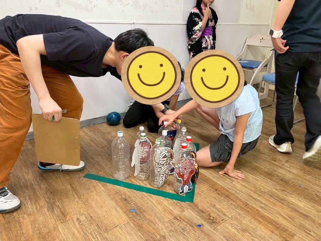 制限時間15分の間に、全員で協力して8本ある的全てに入れることができれば、景品を2つずつゲットできます⏳