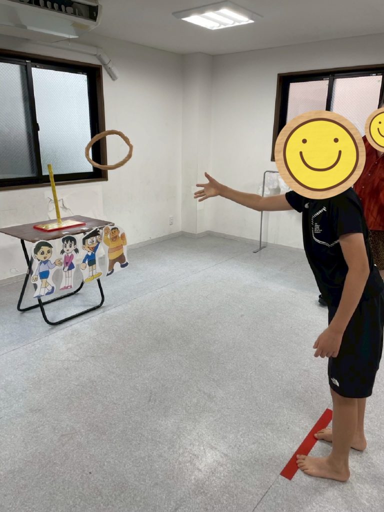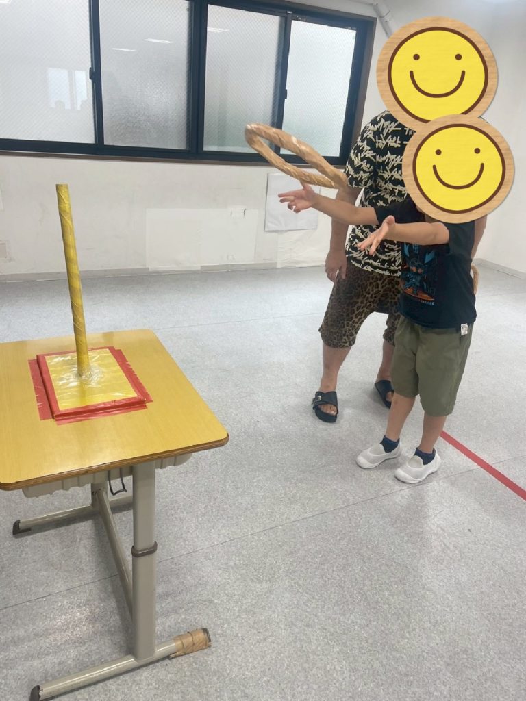 3回の輪投げを投げて2つ入れることがてきるか、チャレンジです👍