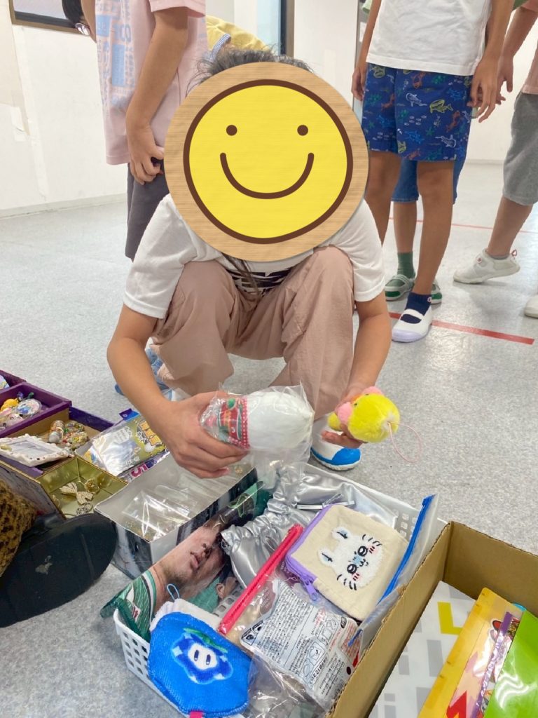 子どもたち全員に豪華景品をプレゼント🎁しました。残念ながらあげられる数は決まっているのでみんなとても真剣に悩んでいます🎶