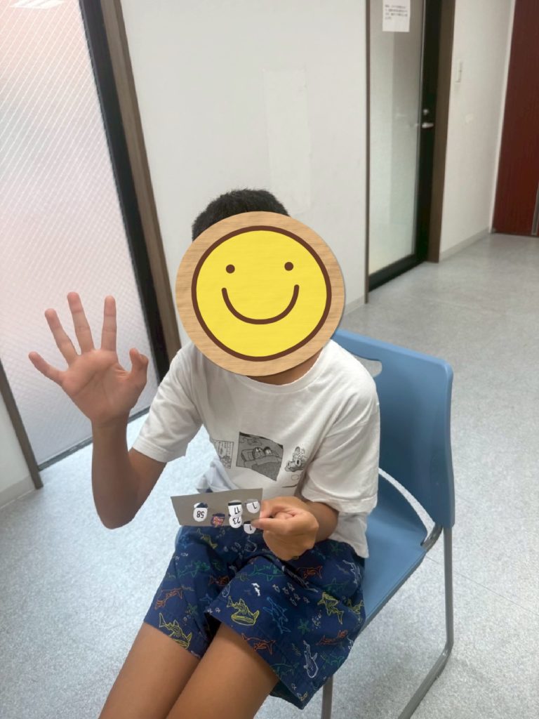 一人ひとりに配布をされたカードの数字を確認し、その数字が先生の数字より大きいのか小さいのかを自分で選びます🧐