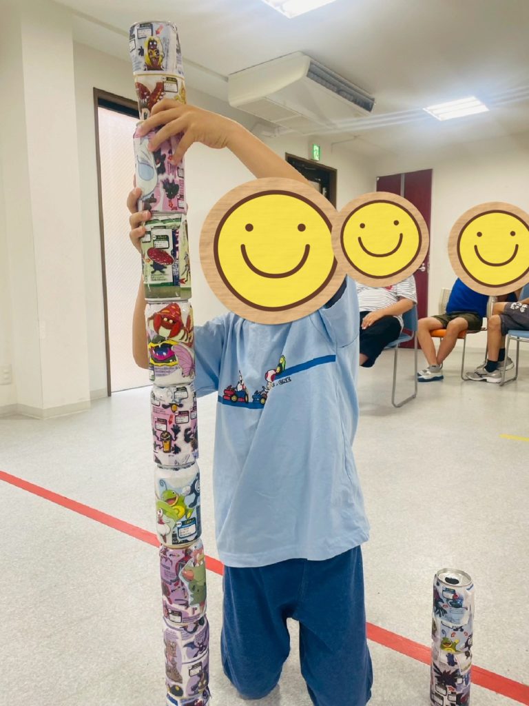 すごい集中力で12個目に挑戦して、自分の背よりも高く空き缶を積んでいる子もいました!