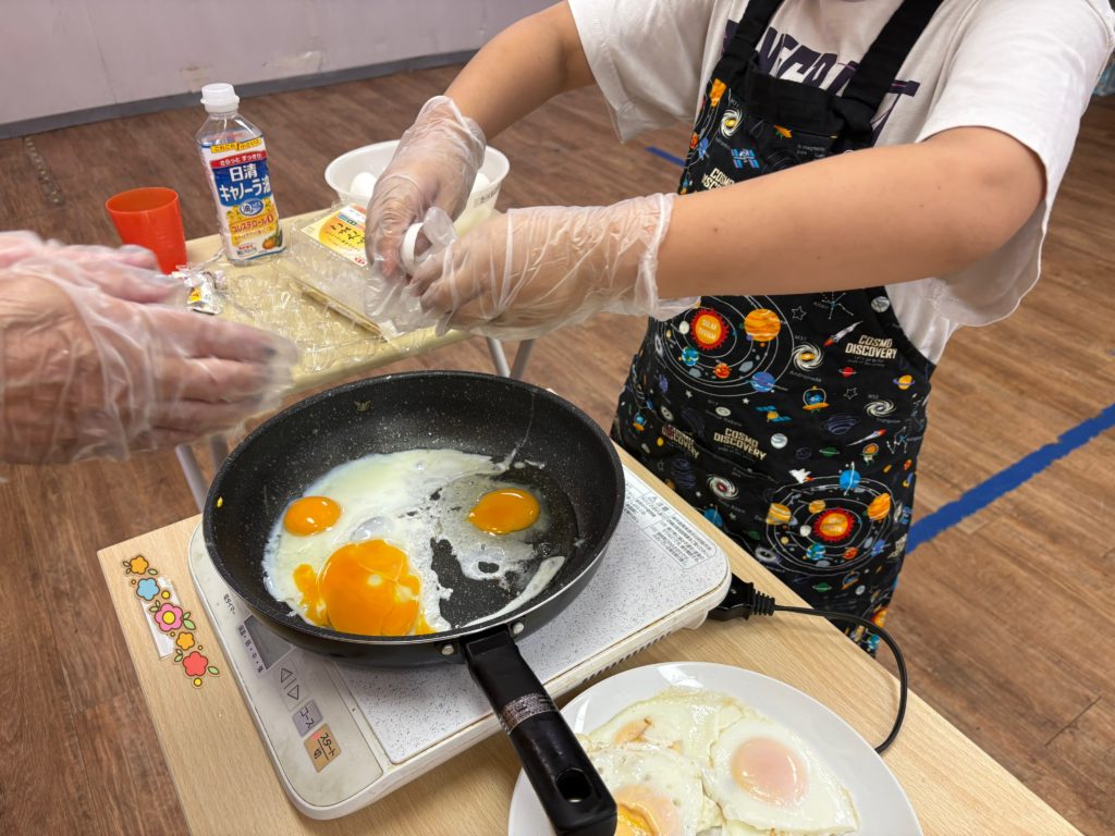 最後は各々作業してもらった材料を、ホットプレートで炒めます!自分たちで味付けを行いながら、全力炒め🌀🌀