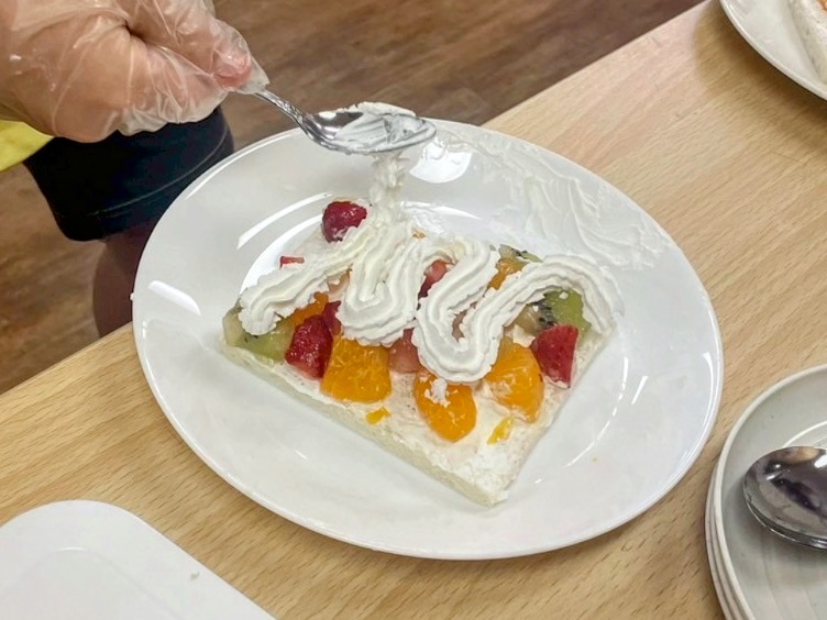 それでは、スプーンで生クリームを伸ばしましょう🥄