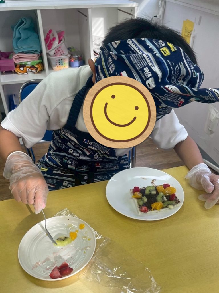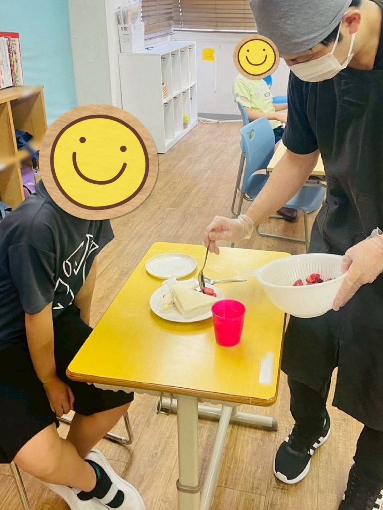 先生とのお約束、順番待ちなどルールをしっかり守りながら、みんなでクッキングを楽しむことができました✌️
