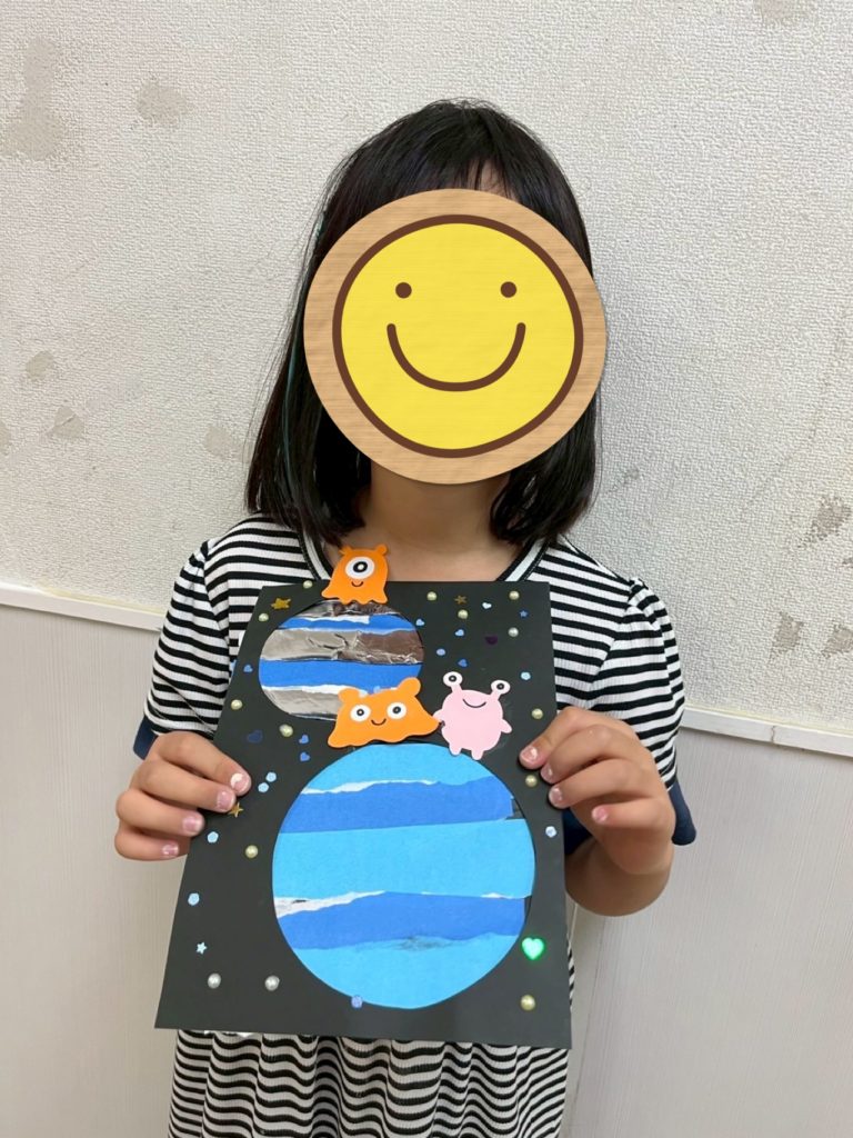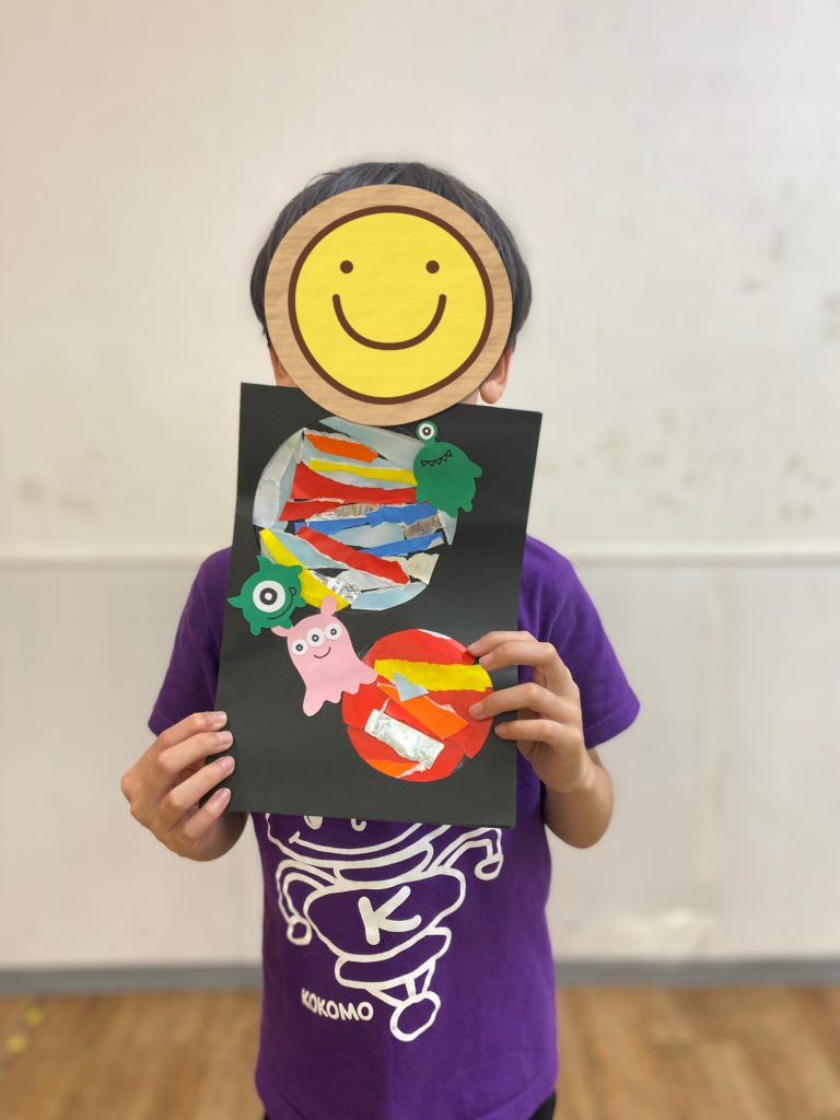 今回のテーマは宇宙なので、可能性はまさに無限大!正解は無いので、どんな色を選んでも、どんな形にちぎっても味のある作品が出来上がるのが魅力です🌈