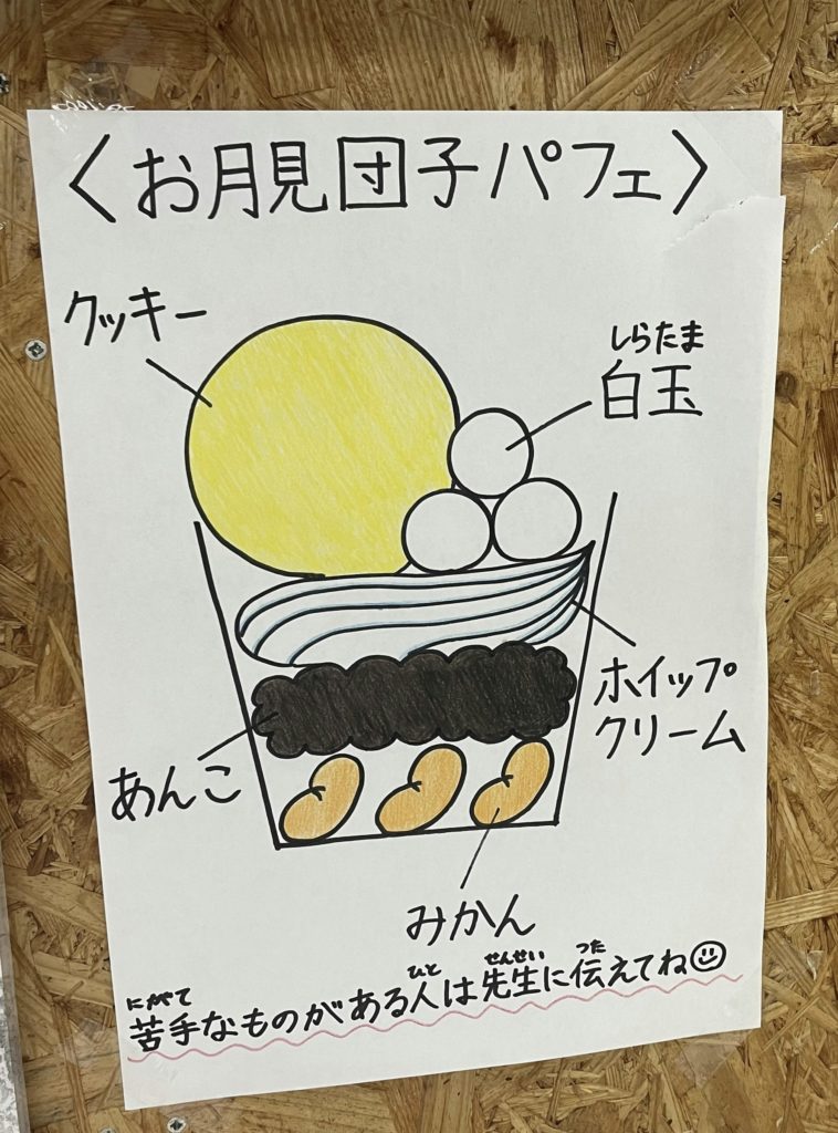 今年の十五夜はあいにくの曇りでしたが、みんなでパフェを食べてお月見気分を味わうことが出来ました😊