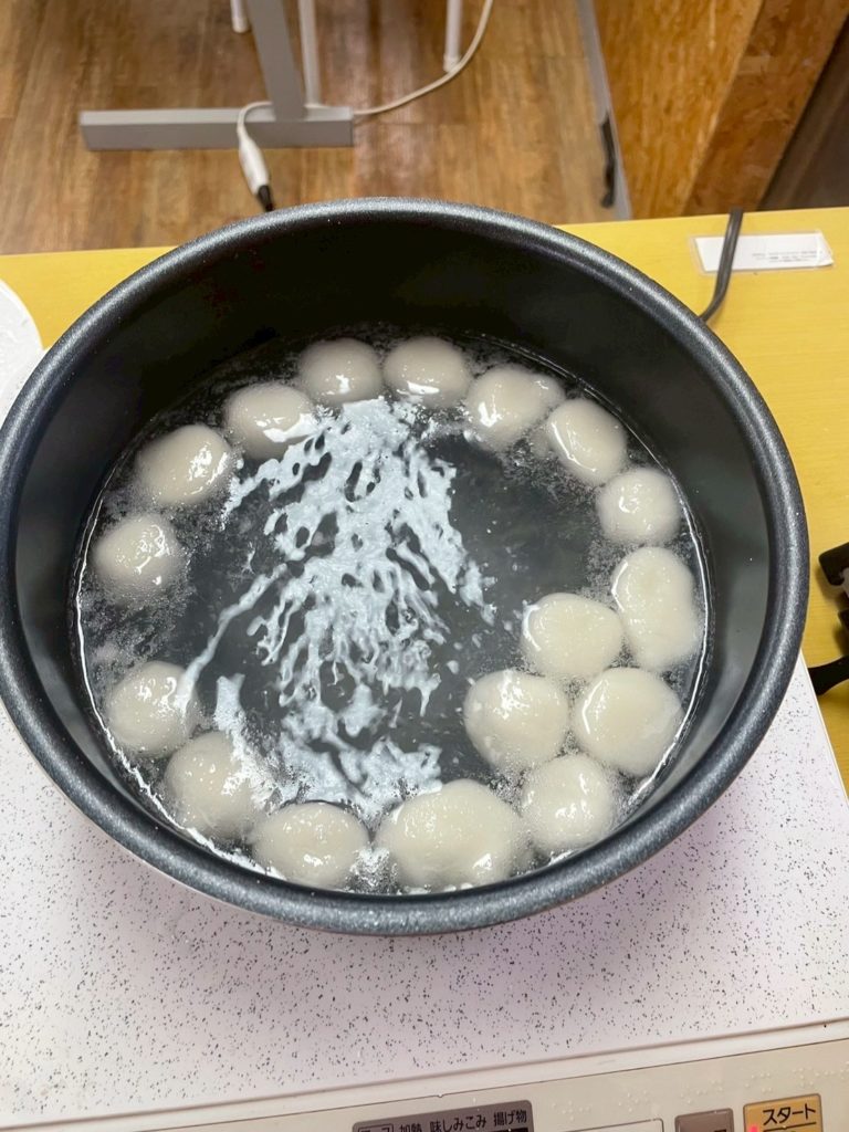 出来上がった白玉を先生が茹でてくれている間も、みんな自分の席でしっかり待つことが出来ていました!