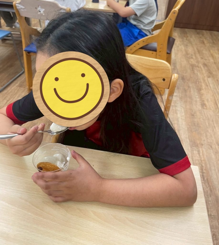 見本のイラストを見て、食べられないものはしっかりと自分で先生に伝えます😊自分で選択・決定をしてそれを相手に伝えるというのはとても大切なこと👍