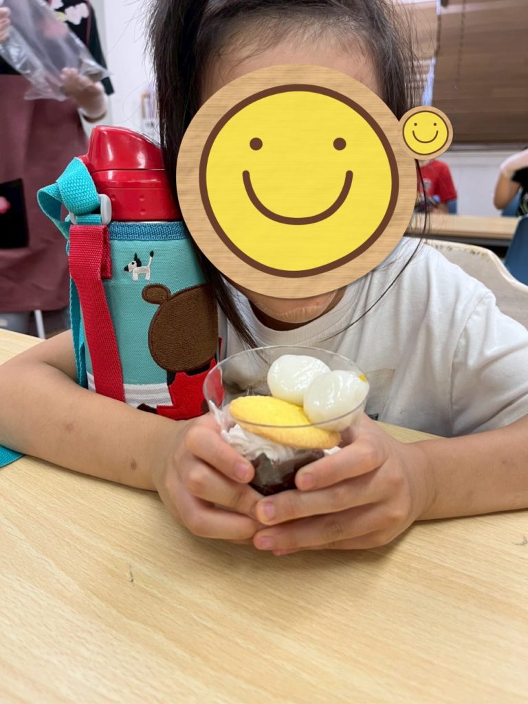 先日、クローバーキッズ麻布十番では十五夜にちなんで「お月見団子パフェ」を作りました🎑