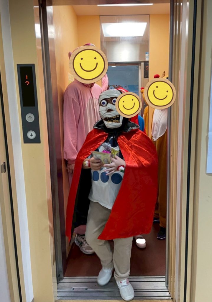 まず1日目は、みんなで仮装をしてデイサービスのゲストの方のところに訪問しました!