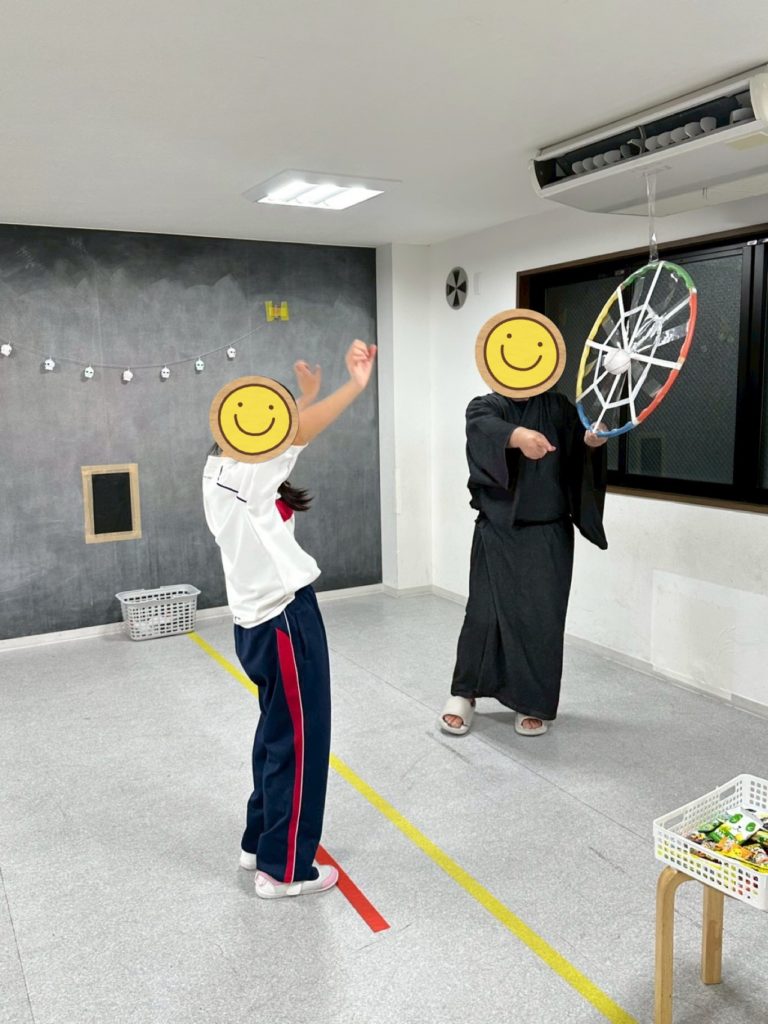 その後、いただいたお菓子を山分けするために、蜘蛛の巣ダーツを行いました🕸️🎯