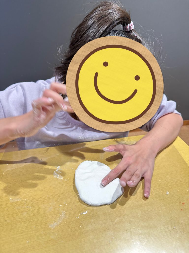 ある程度柔らかくなったら、たくさんこねて、自分の好きなお皿の形が作れるようにしていきます!
