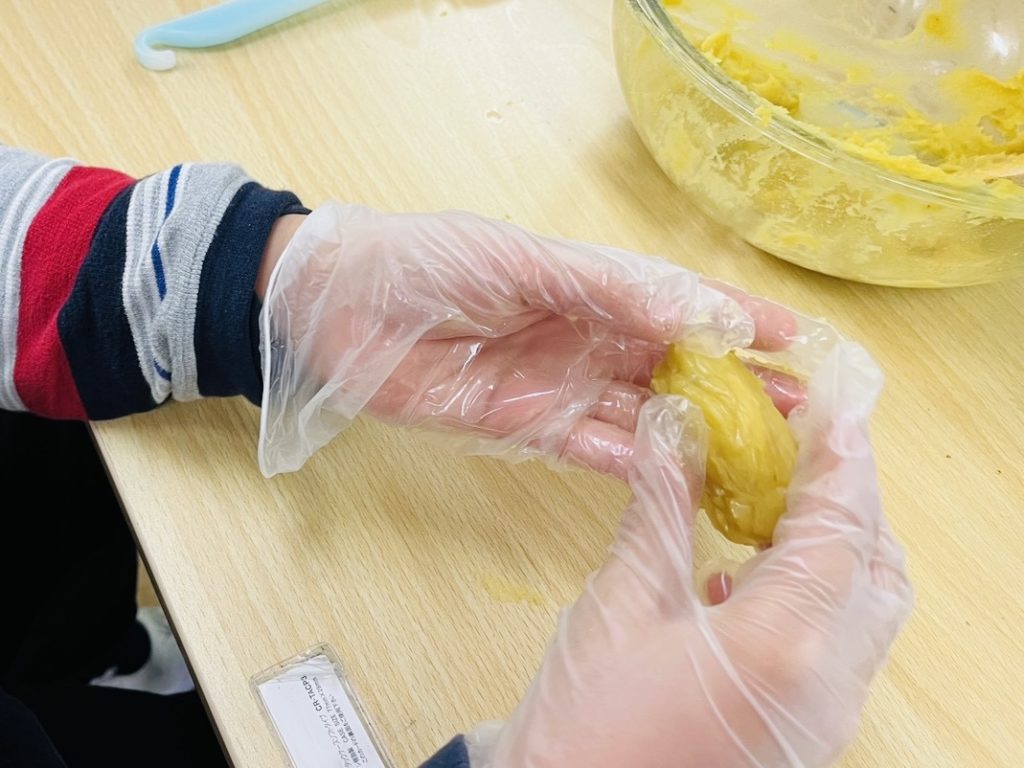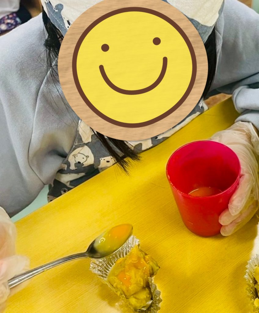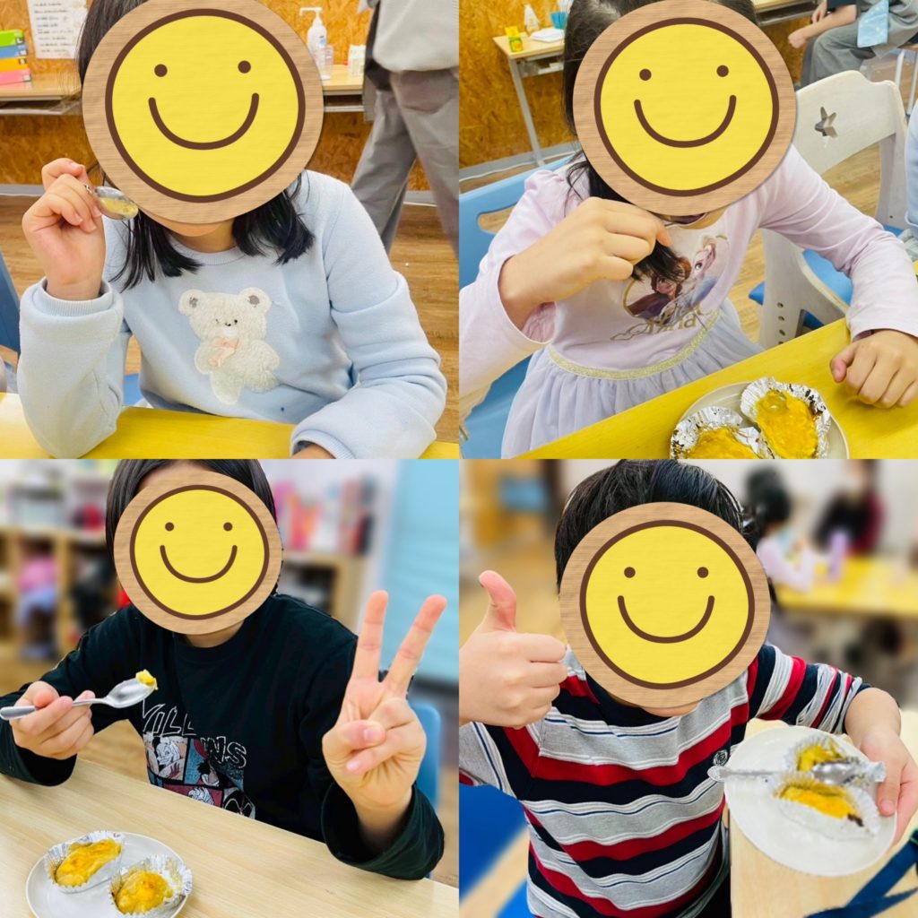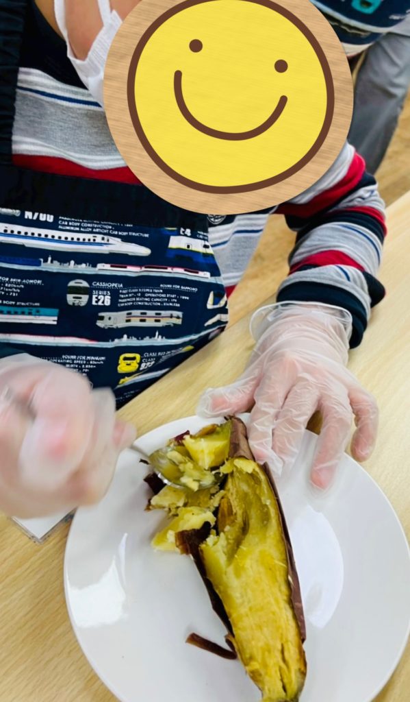 クローバーキッズ麻布十番ではスイートポテトを焼き芋からスプーンでくり抜く工程から全て子ども達に行ってもらいました!