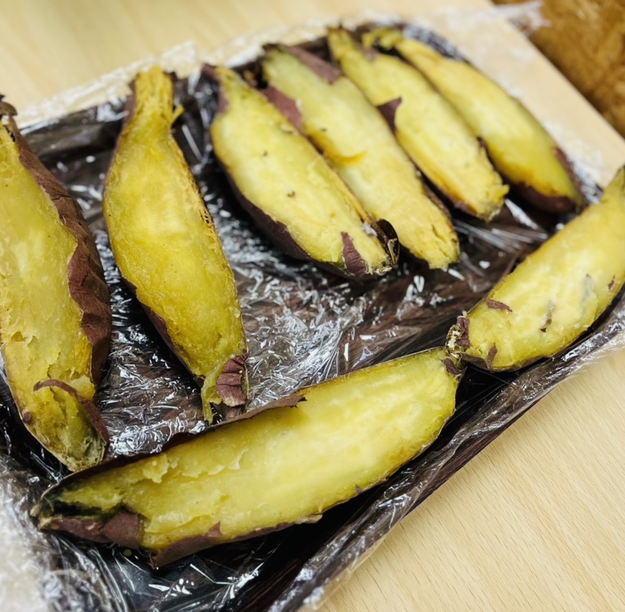 今回の焼き芋は、「紅はるか」という品種を使用しました!ねっとりとした食感で、とても甘い品種です!