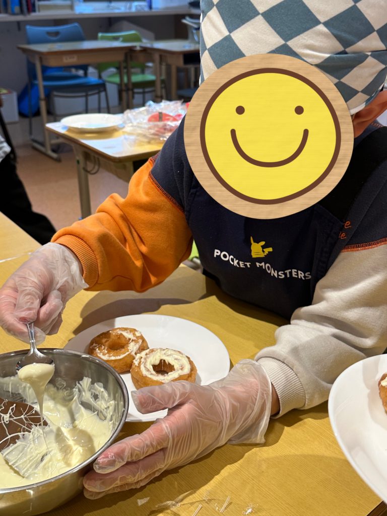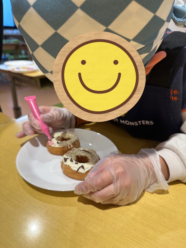 クローバーキッズ学芸大学では、先日のプログラムでデコレーションドーナツ作りを行いました!