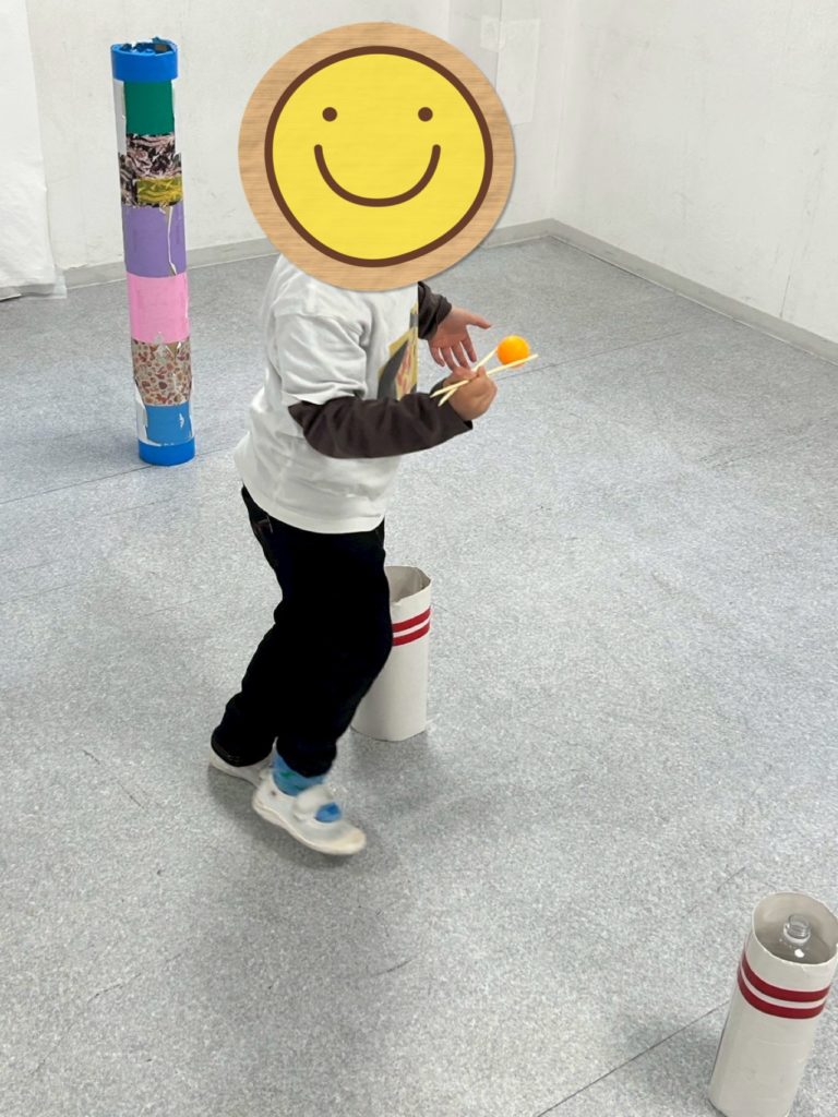 2つ目はプラスチックスプーン🥄の上にピンポン球を乗せて運びます。子どもたちは「簡単だよ🎶」とスラスラと運んでいました✨