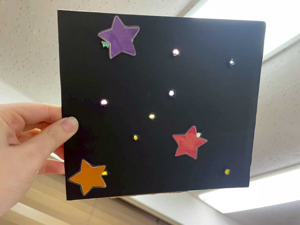 全ての穴にセロハンを貼ってから、明かりに照らしてみると……。