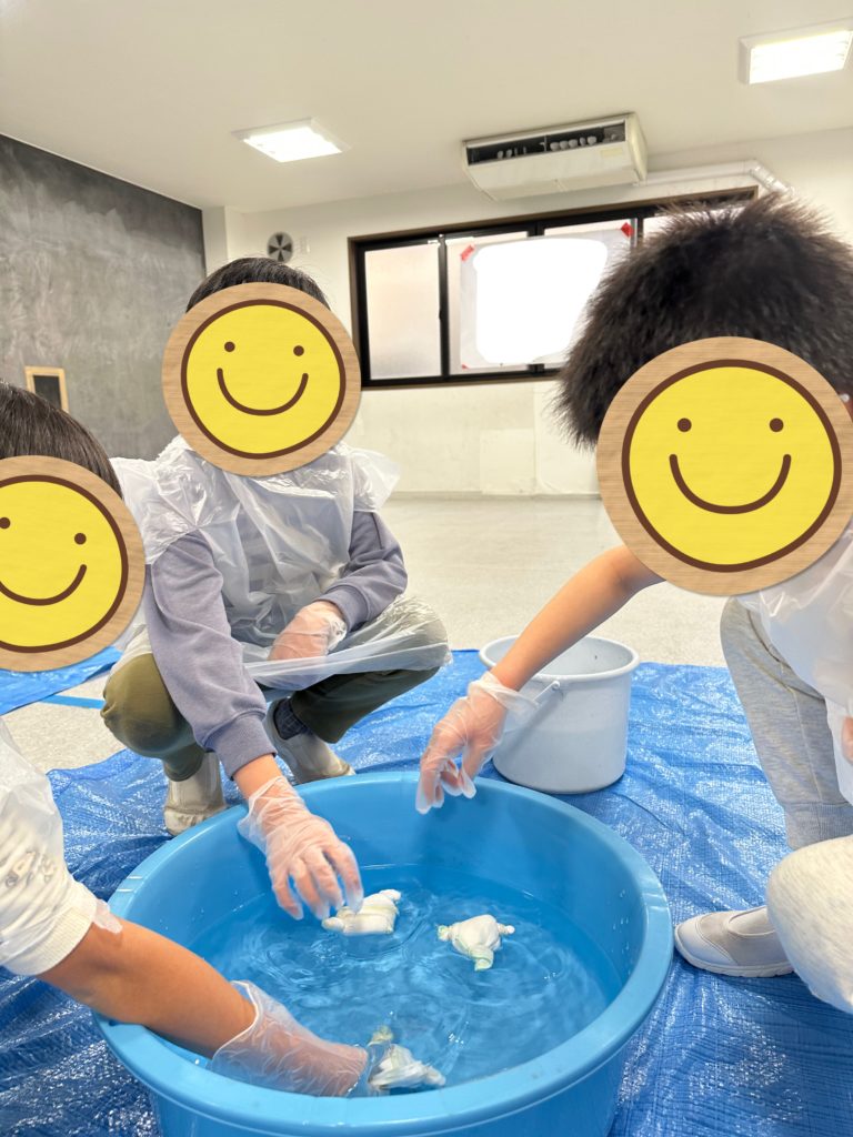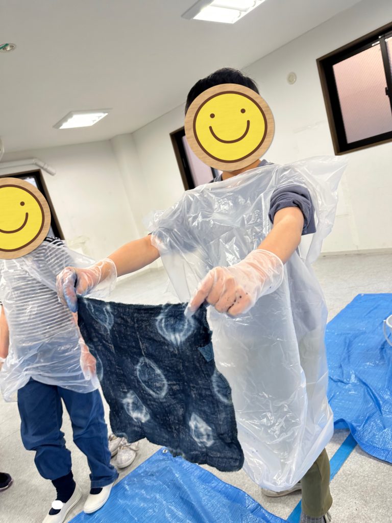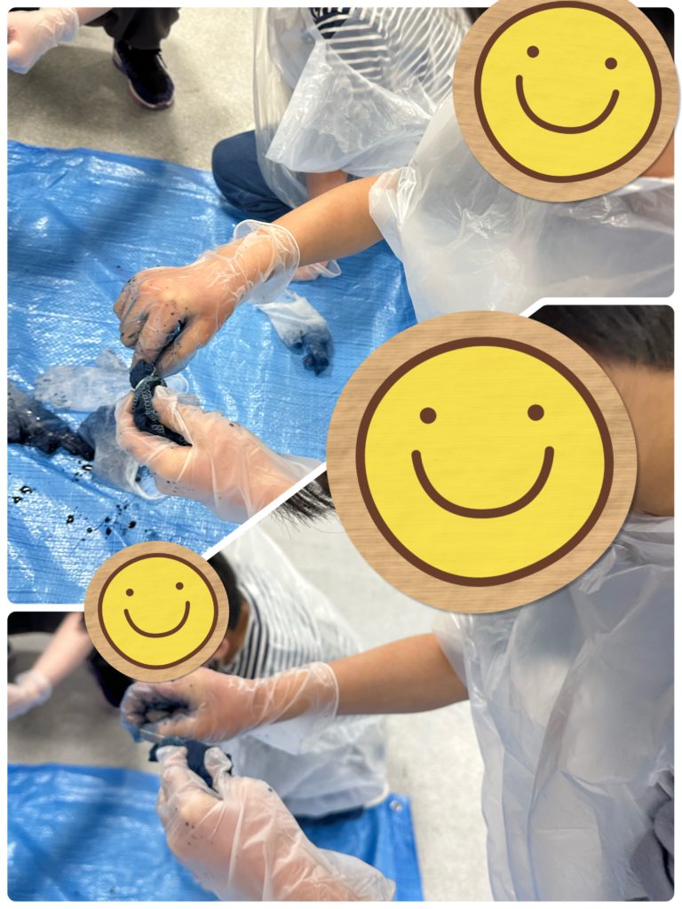 クローバーキッズ学芸大学では、先日、工作・教養の活動として「藍染体験」を行いました!