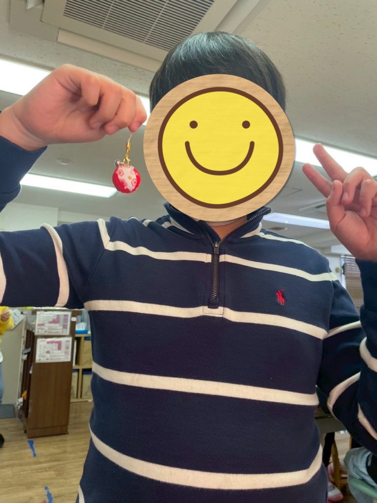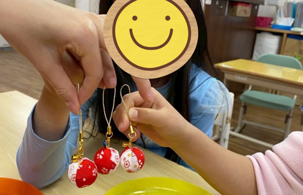 先日、クローバーキッズ麻布十番では「ちりめん鞠玉キーホルダー」を作る活動をおこないました♪