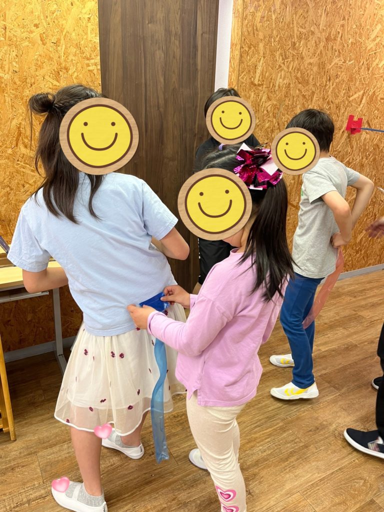 腰にしっぽをつける際には、チーム同士協力してつけあいっこ❗️