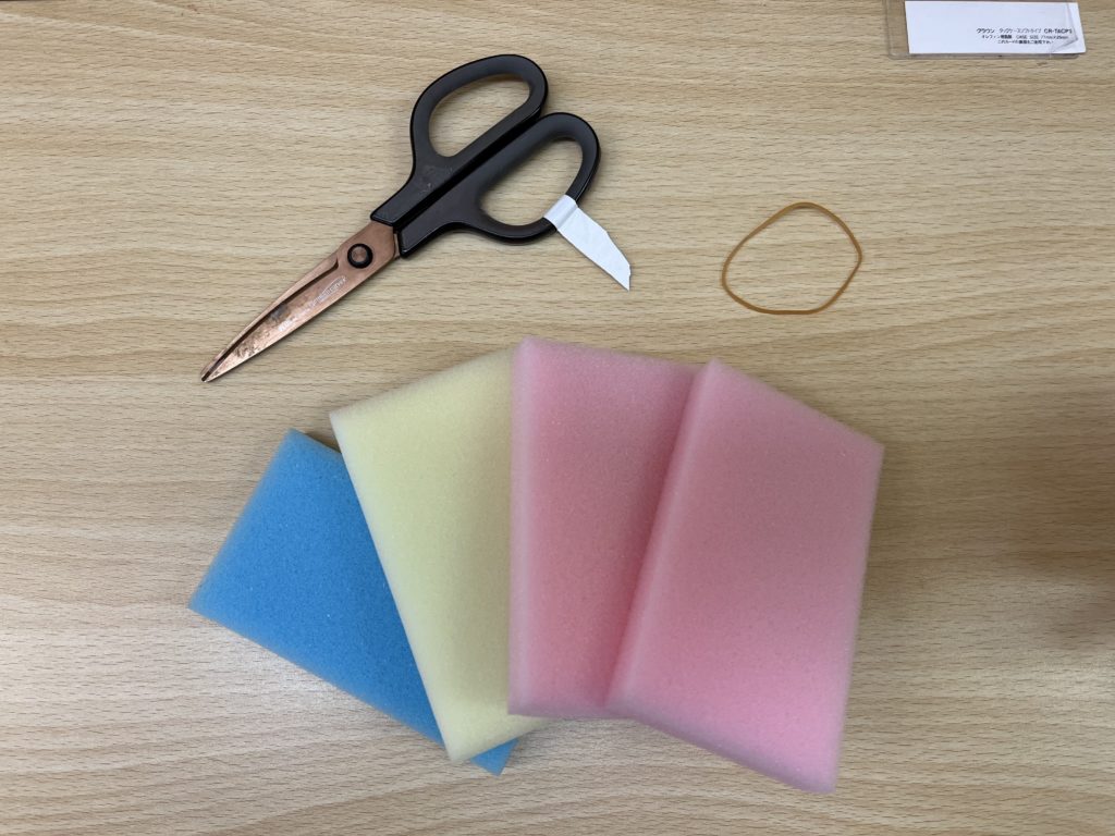 子どもたちが切りやすいよう、事前にスポンジに目安の線を入れました🖊️