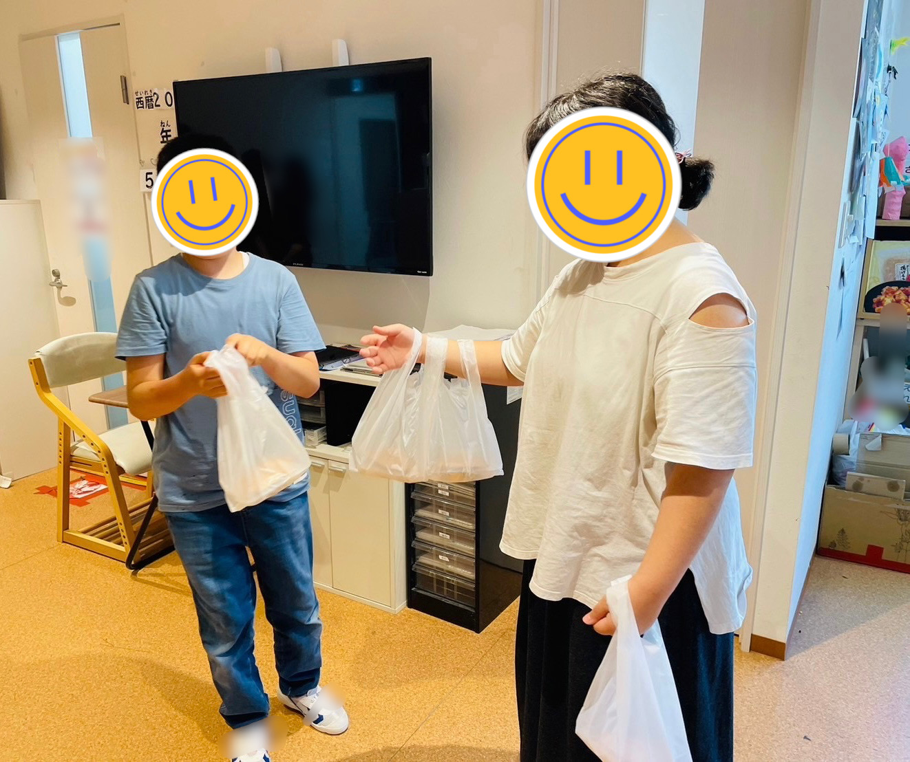 輪投げも楽しんだあと、Mさんが先生と一緒に作ったたこ焼きせんべいをプレゼント☺️