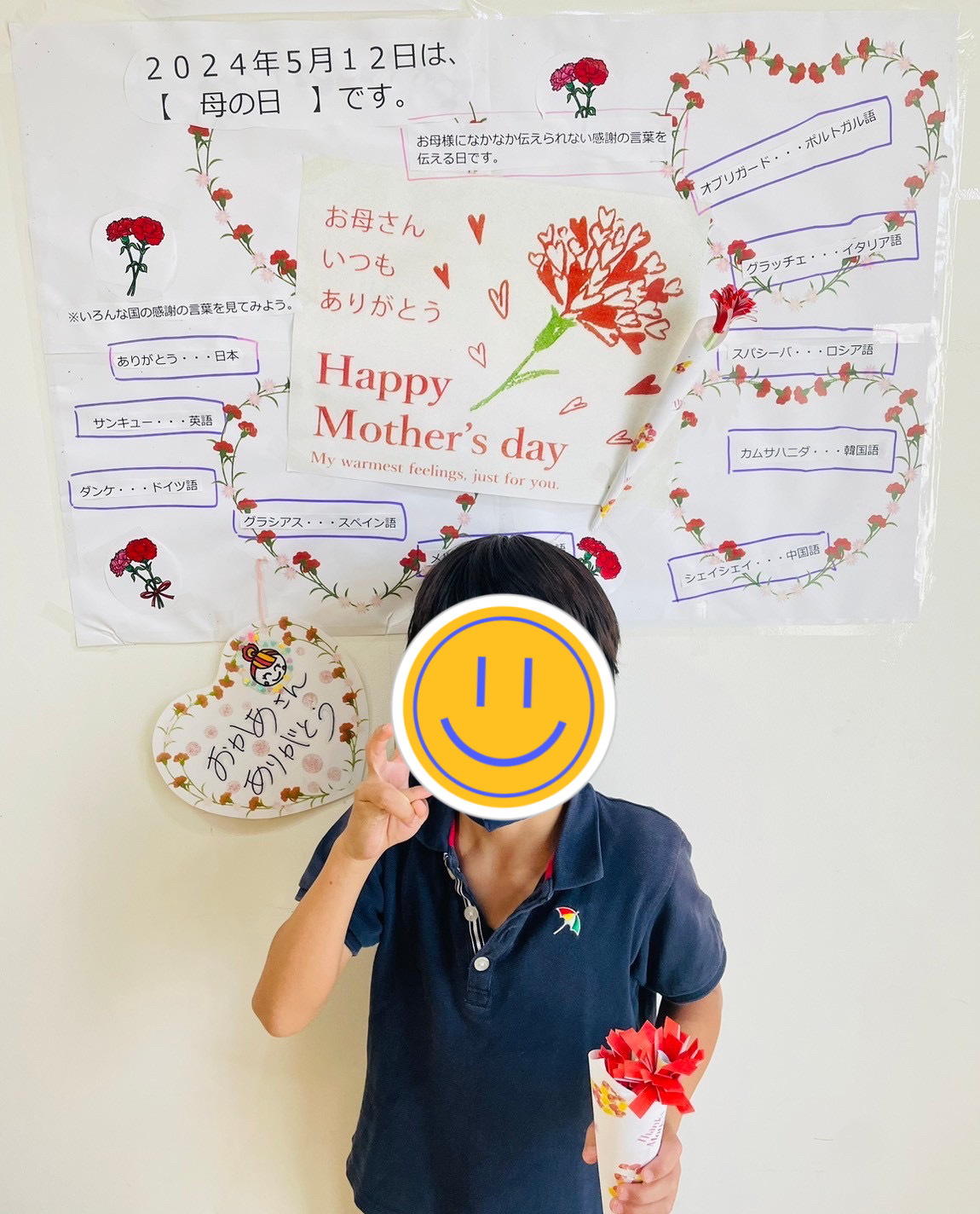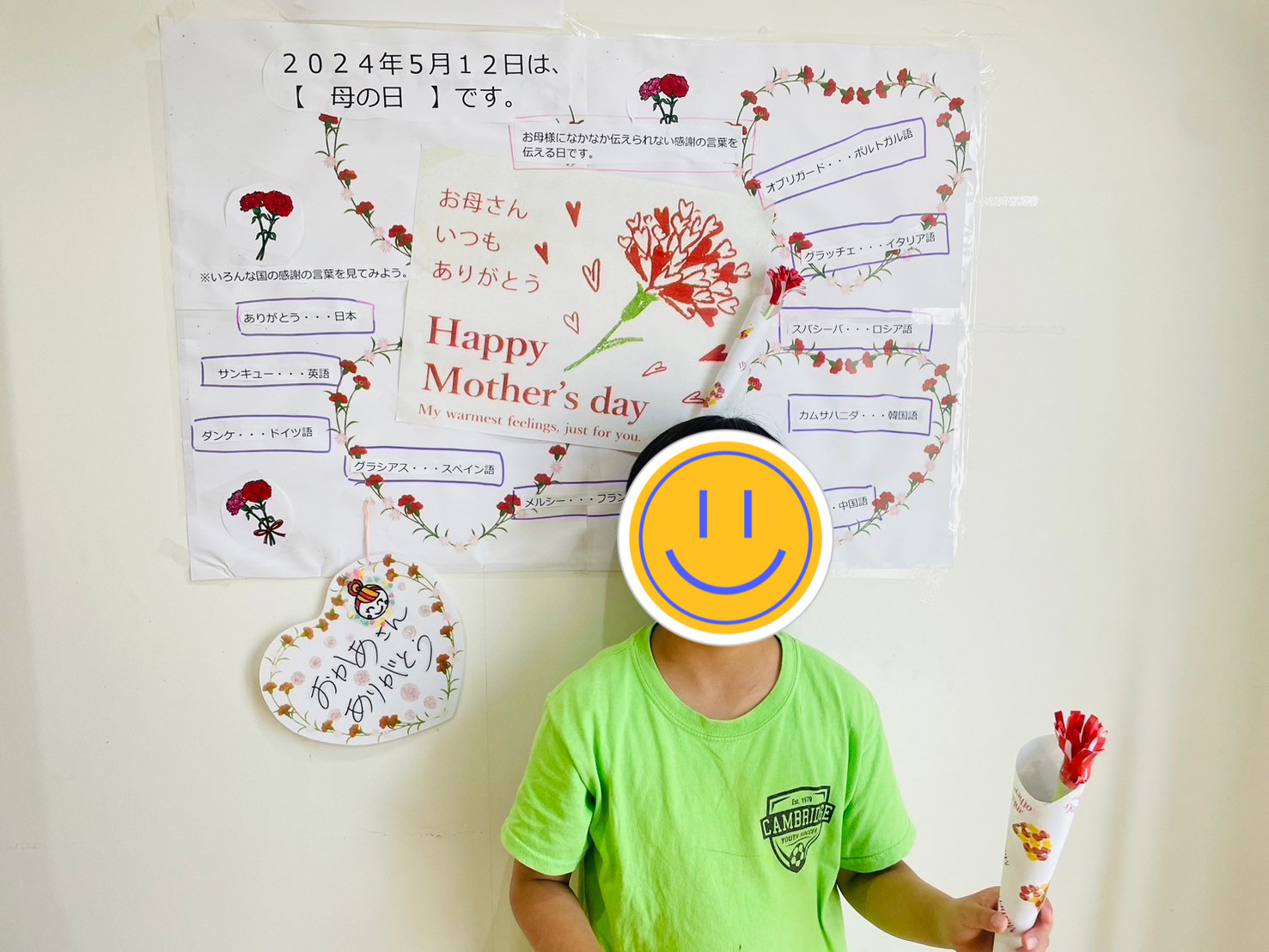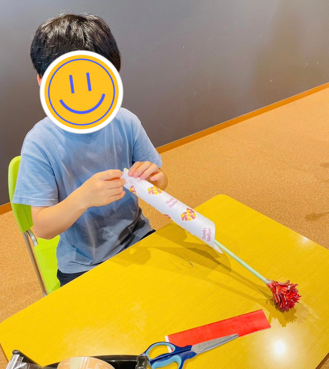 先日、クローバーキッズ学芸大学では母の日に向けて「折り紙花束」を作りました♪