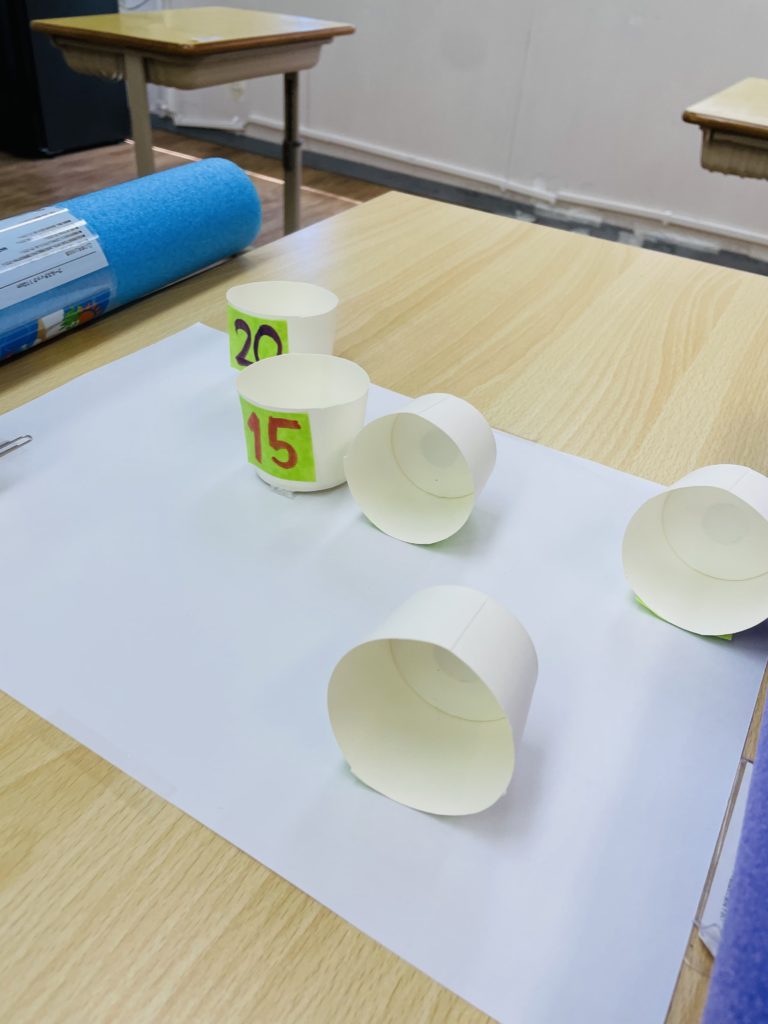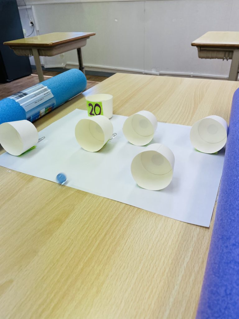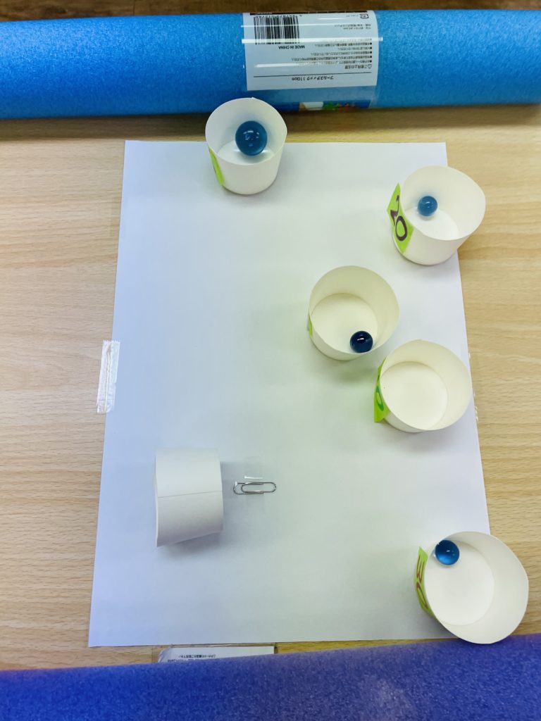カップは横倒しになっており、ビー玉が入ったらカップが起き上がり得点が分かる仕組みになっています☝️