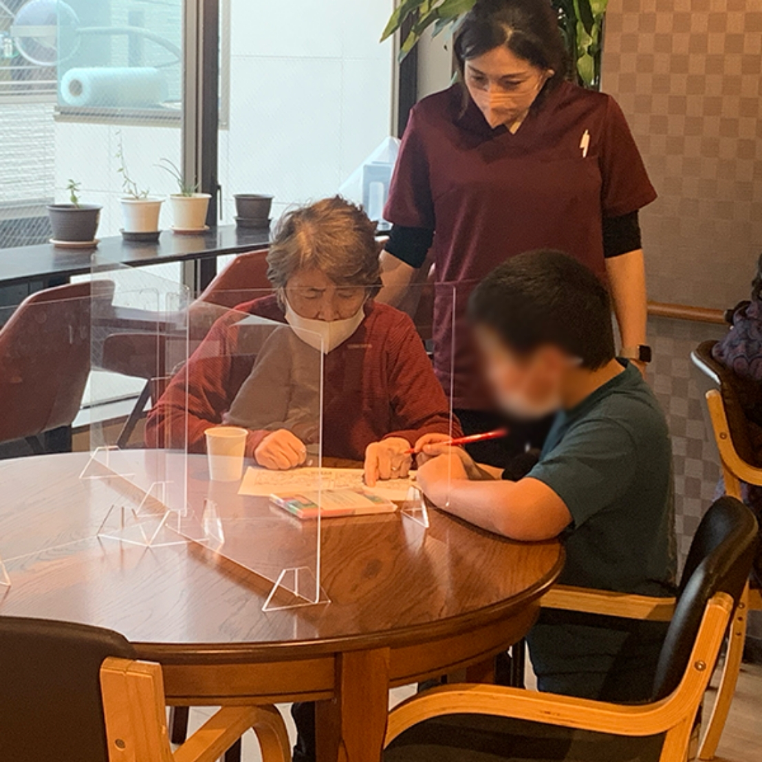 高学年向け個別支援を提供【私たちの想い】学芸大学別邸教室は「共生型デイサービス」です。子ども、高齢者、職員が多世代で同じ空間で過ごします。子どもたちは第三者の大人とのコミュニケーションを通して社会性を養い、愛される環境から自尊感情が育まれると考えています。学校に行きたくない日にも、家でひとりぼっちにならずに、一緒に誰かと笑ったり、ご飯を食べたり、クッキングをして過ごせます。子どもたちにとって、家でも学校でもない「心から安心して過ごせる居場所(=サードプレイス)」を作りたいと願い、開所しました。 【施設の魅力】決められたプログラムではなく、やりたいことをお子様自身で自己決定してもらい、自発的な行動を引き出します。 職員や高齢者との関わりの中で、コミュニティの一員として役割を感じたり(=自己有用感)、できない自分を受け入れること(=自己受容)を育み、「思春期に向けた大人になる準備」を支援していきます。また、高学年になればなるほど、学校での学習時間が増え、進度も速くなります。そんな小学校高学年〜18歳までをメイン対象とし、つまづきや理解度に合わせ、個別での学習支援を行います。